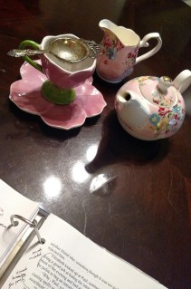 I have a lot more free time than usual tonight due to my husband being gone for a guy’s night and having nothing in particular scheduled. I was going to go to the Library of Congress to do some research and writing, but it is a dreary, rainy night, and I decided I really did not want to leave the house. So, instead I made myself a pot of tea, turned on some Jim Brickman and am doing my writing here, with no people around.