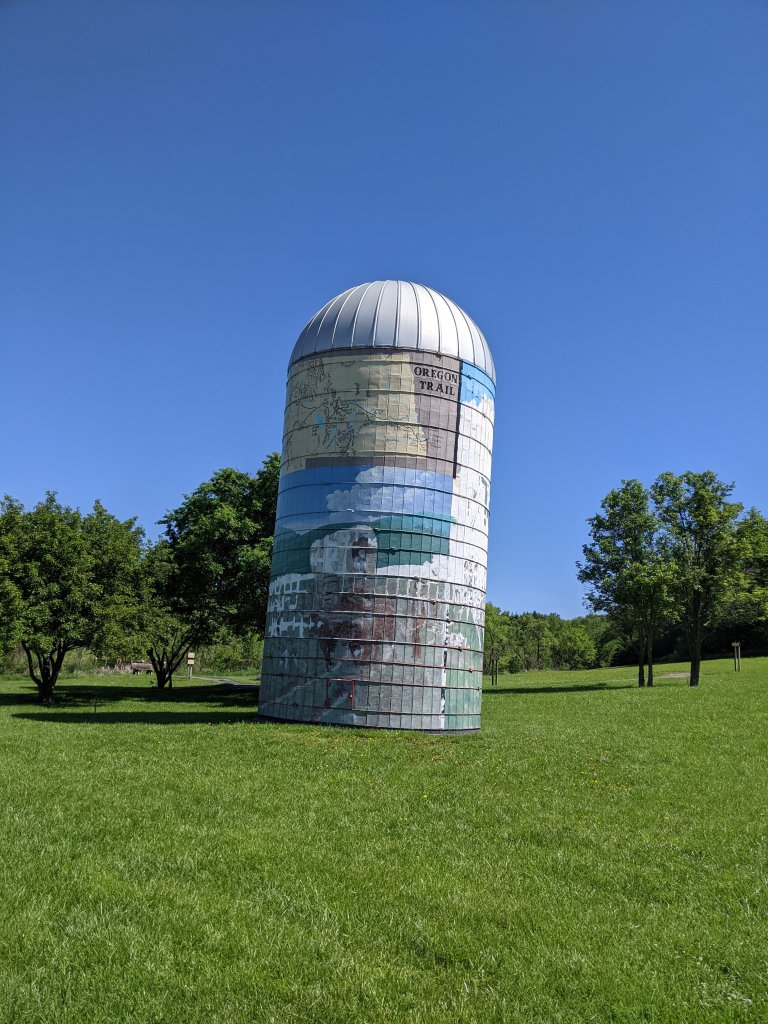 FYI, I completely geeked out when we turned on the road that said “Oregon Trail Road.” First we stopped at the Oregon Trail Nature Park where we got to see the a silo with a mural of the Oregon trail map, looked at the Louis Vieux Gravesite, walked over to a cholera cemetery from 1849, admired the Red Vermillion River, and swung by yet another Oregon Trail Park with a wagon sculpture. It was both fun and sobering to see so many different aspects of the trail, imagining emigrants from 150 years ago milling in those very spots, trying to survive.