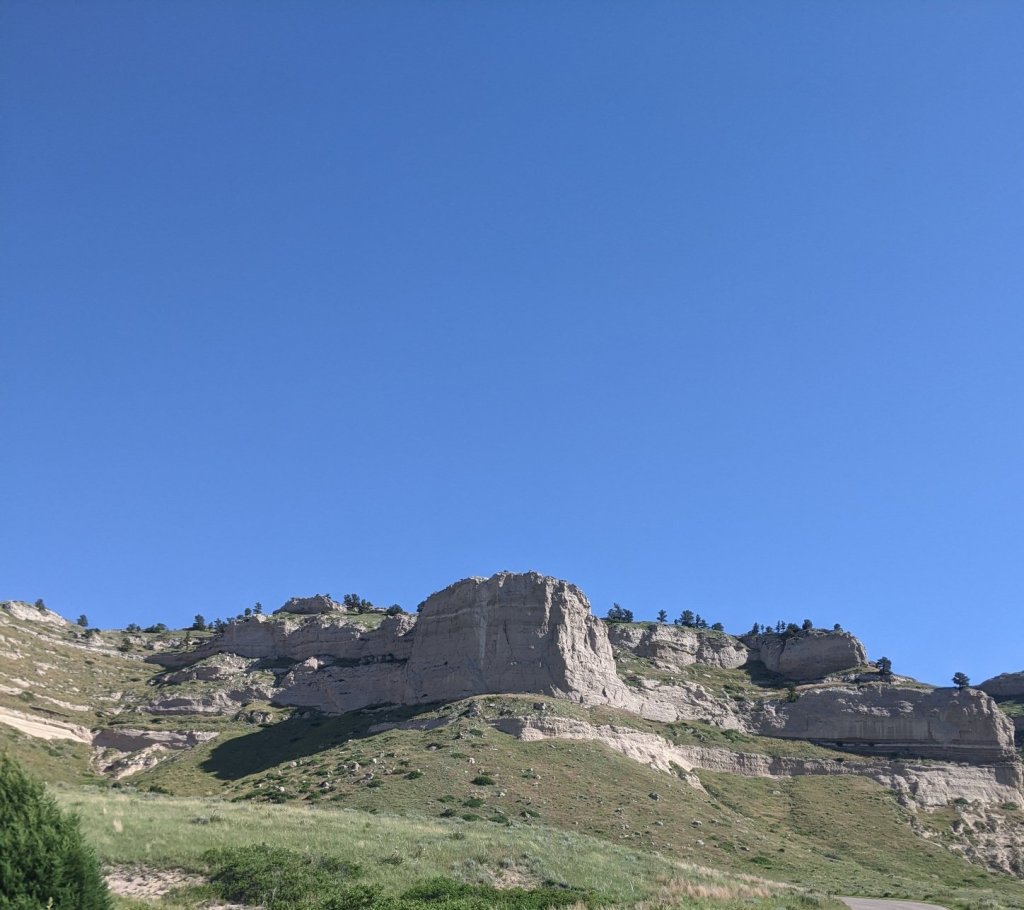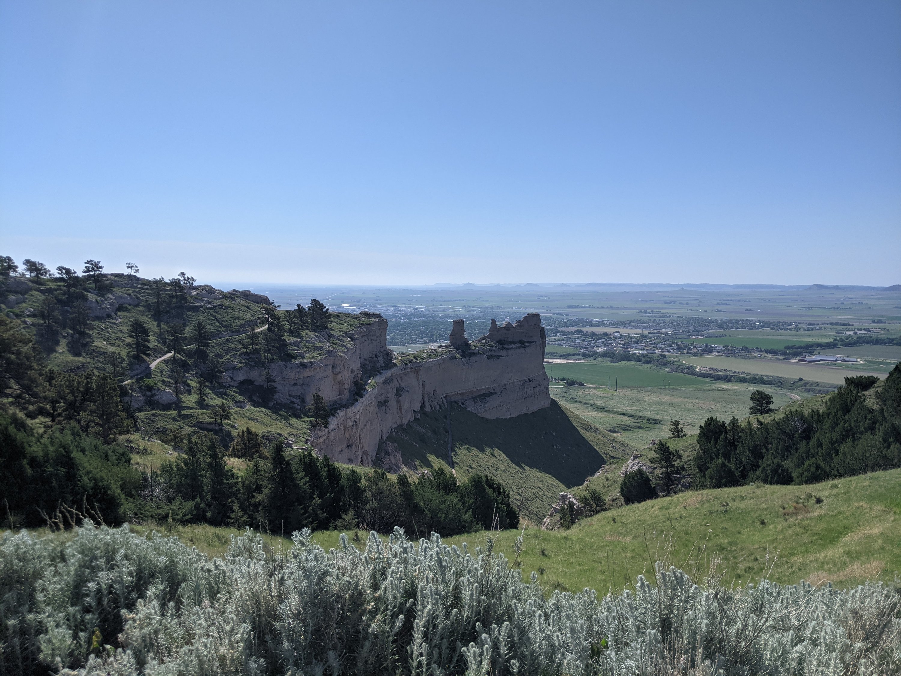 they were nearing the end of the prairie and heading into the mountains. Early wagon trains avoided the steep bluff until the Mitchell Pass opened in 1850, which offered an easier way to get through them. As amazing as it would have been to hike to the top, we didn’t have time and opted to drive. The sights were simply breathtaking! The bluff itself was something to see, but the top view was worth sitting and gazing at.