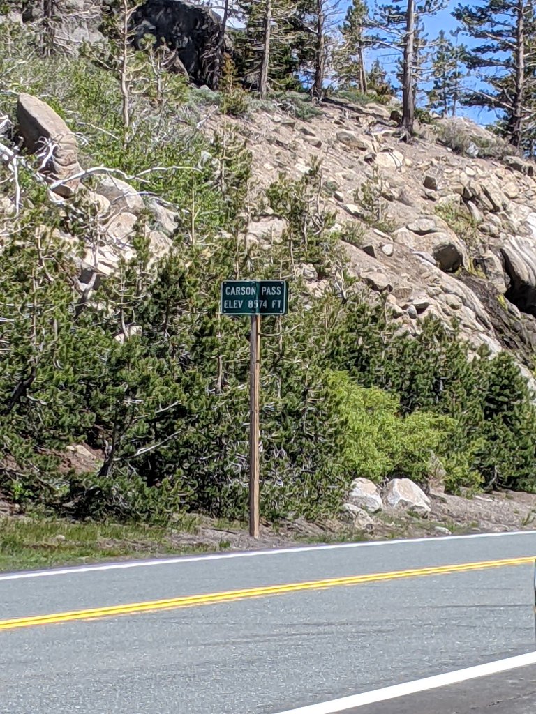 At this point, the internet again went out, and I had to depend on the fact that we were on a historic interstate and hope that there were markers along the way. We didn’t get internet back again until we arrived to our camping place tonight. Fortunately, there were in fact markers, and we found Carson pass!