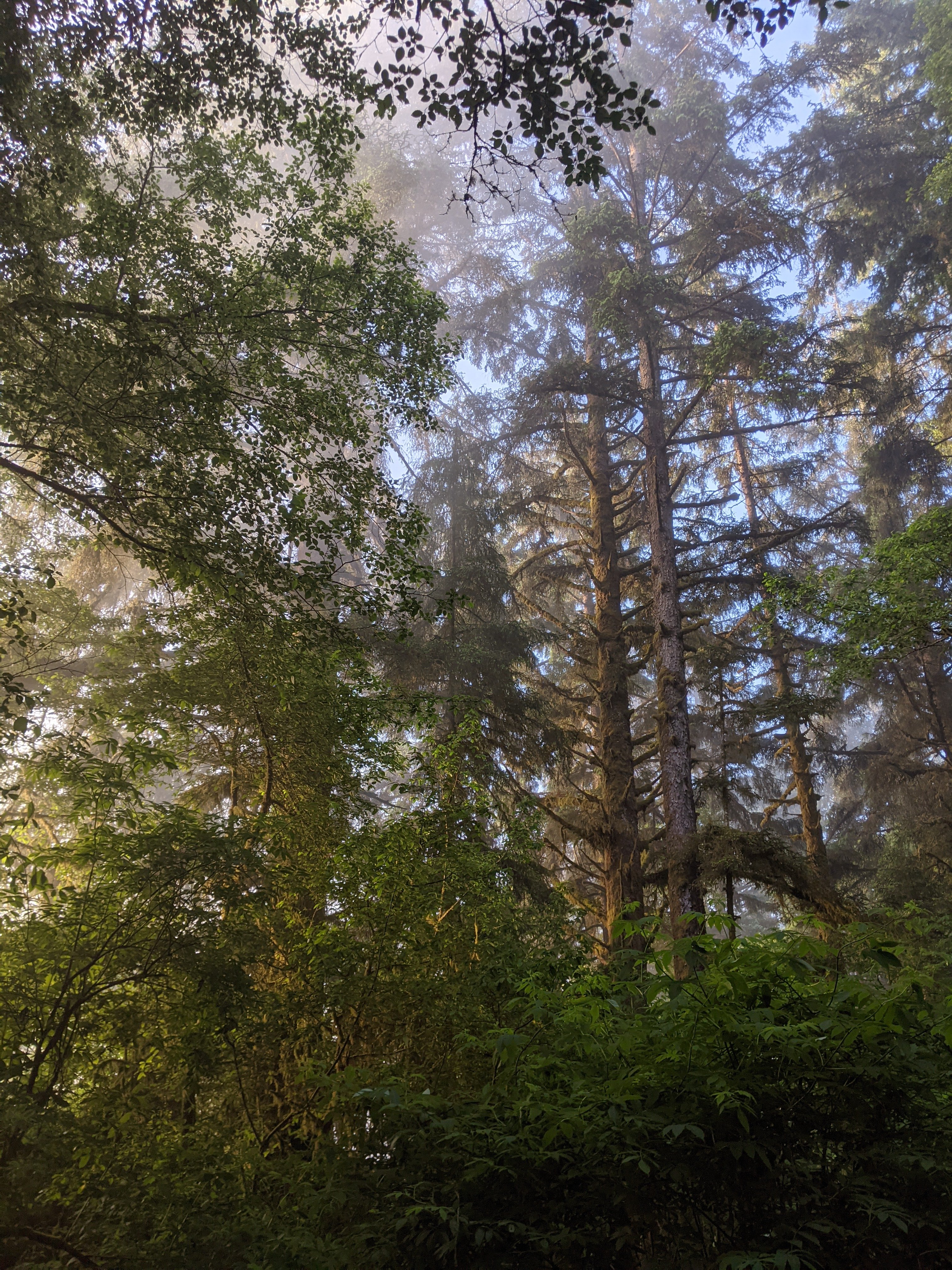 Day 20 (June 16): After a very long drive from Sacramento yesterday, we arrived in the Redwood Forest in northern California around 9:45 p.m. Definitely later than most of our nights, and our first priority was getting everything set up so that we didn’t violate quiet hours at 10:00 p.m. So we, obviously, didn’t really see much. Which meant it was rather extraordinary to wake up the next morning, step out of our tent, and see the mist surrounding the ginormous trees around us. As it turns out, most of the trees around us were actually huge fir trees that were almost as tall as the redwoods themselves. Either way, we were completely awed by them, and the fact that we couldn’t see them when we had arrived in the dark the night before.