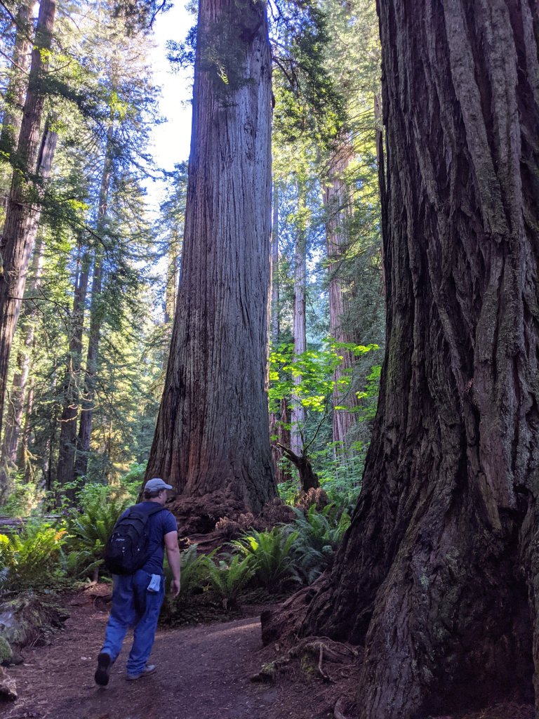 It would probably have helped if we had checked that trail map at any juncture. But we didn’t, assuming we knew where we were going. We delved deeper and deeper into the Redwood Forest, stumbling upon bigger and bigger trees, and so completely wowed by all of them that it didn’t even occur to us that we might be meandering further than we intended. I mean, these trees were so big that I took a video walking around one and it took 44 seconds. We legitimately could not believe the size, and no matter how many hundreds of pictures we took, the pictures themselves simply don’t convey it.