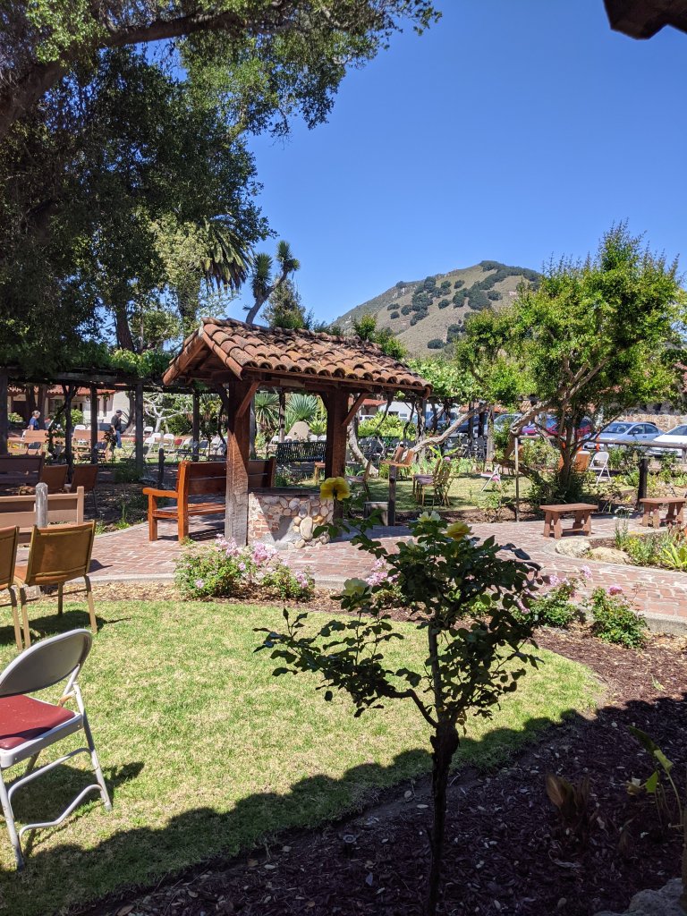 We headed straight back to the coast to see the San Luis Obispo Mission, which I had never heard of, but was one of Daniel’s biggest goals. One of the prettiest missions in the state, it’s also one of the oldest. Established in 1772 as one of the 21 original missions, it was certainly worth seeing. Unfortunately, the museum was still closed due to COVID, and a service was in progress, so we only got to take a turn about the grounds and take a couple of pictures.