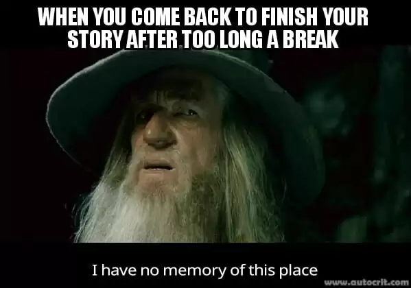 I rather think that, as I dive back into Nameless, which has about 60k words so far and I haven’t touch in over a year, I will probably feel like the below: