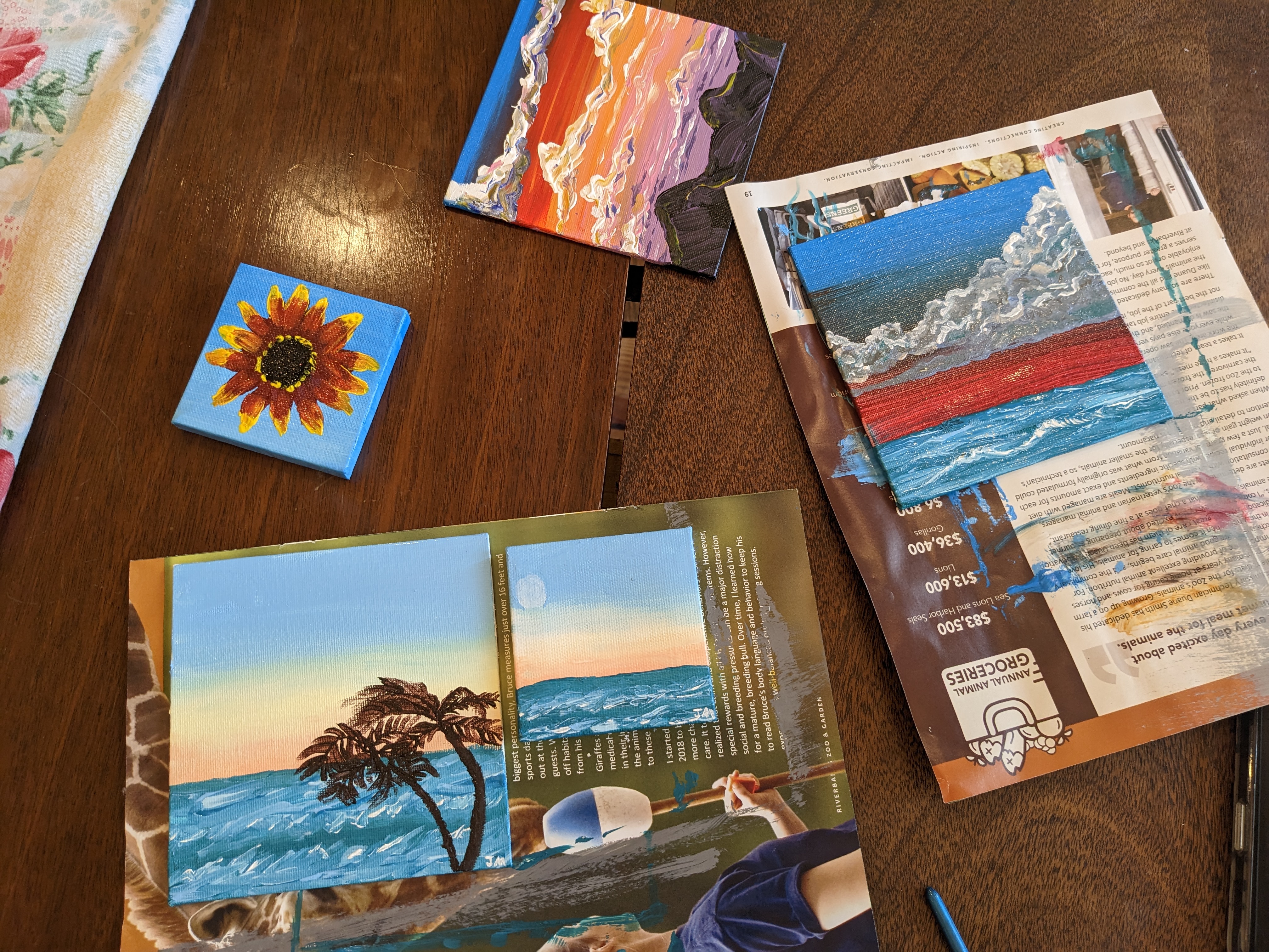 - Daniel is friends with the husband from college and his wife and I bonded over writing last year and have been exchanging e-mails ever since! What a blessing it was to be able to actually visit in person and talk writing to our heart’s content. We met their adorable children, admired their gorgeous house (TWO BALCONIES!), played board games, painted (okay, so Lindsey showed me how to paint some lovely ocean pictures, literally walking me through it step-by-step, and fixing the moon when I proved I couldn’t draw any type of spherical shape), and Daniel and I learned the joy of keeping iced coffee on hand at all times. And, yes, now we too own an iced coffee container, and Daniel has mentioned moving to South Carolina more than once.