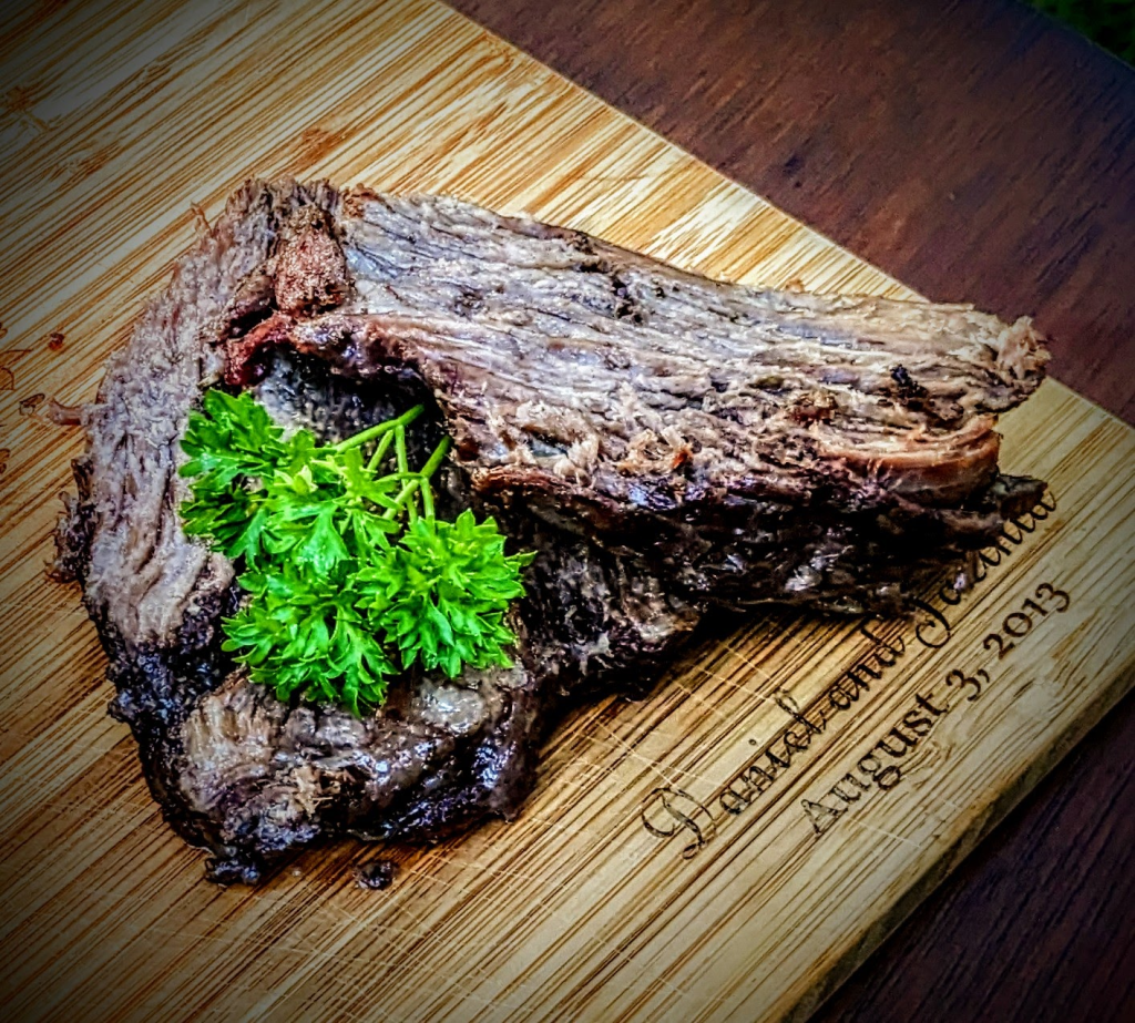 Nonetheless, I gamely cut holes in the beef and did my utmost to shove the stuffing into it. I’m pretty sure about a quarter of it just fell to the counter, but, hey, it looked pretty stuffed to me when I finished!