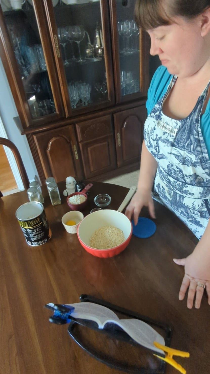 And then…here it comes again. The lack of measurements. “Make a stuffing of”…and then it lists the ingredients. No measurements whatsoever! First is grated bread…simple enough. Breadcrumbs. Of course, as the main ingredient, a lot should probably go in, right? (spoiler alert, not right)