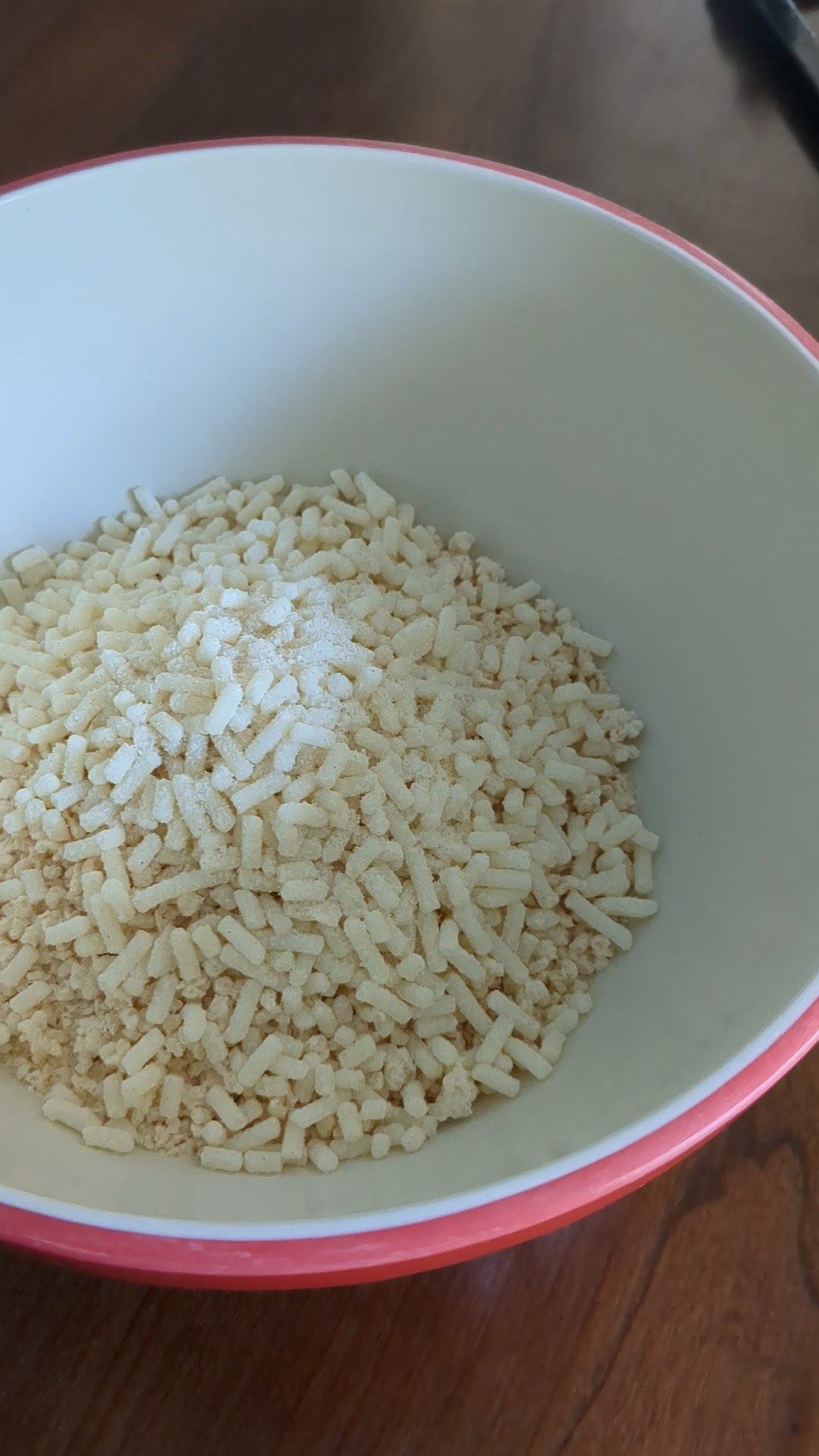 Then suet. Wait. suet? Isn’t that the weird stuff they made with animal fat? Yes, yes it is. I was able to order some vegetable suet on Amazon. They called it shredded suet and it came in little pellets. I admit I did stare at it awhile, trying to decipher whether I was supposed to just dump some in or actually do something with it first. Like, should I melt it? Or did it always look dry like this? I opted for just pouring some in. (spoiler alert: I should have tried melting it, I’m pretty sure. At least, I assume it would have melted…)