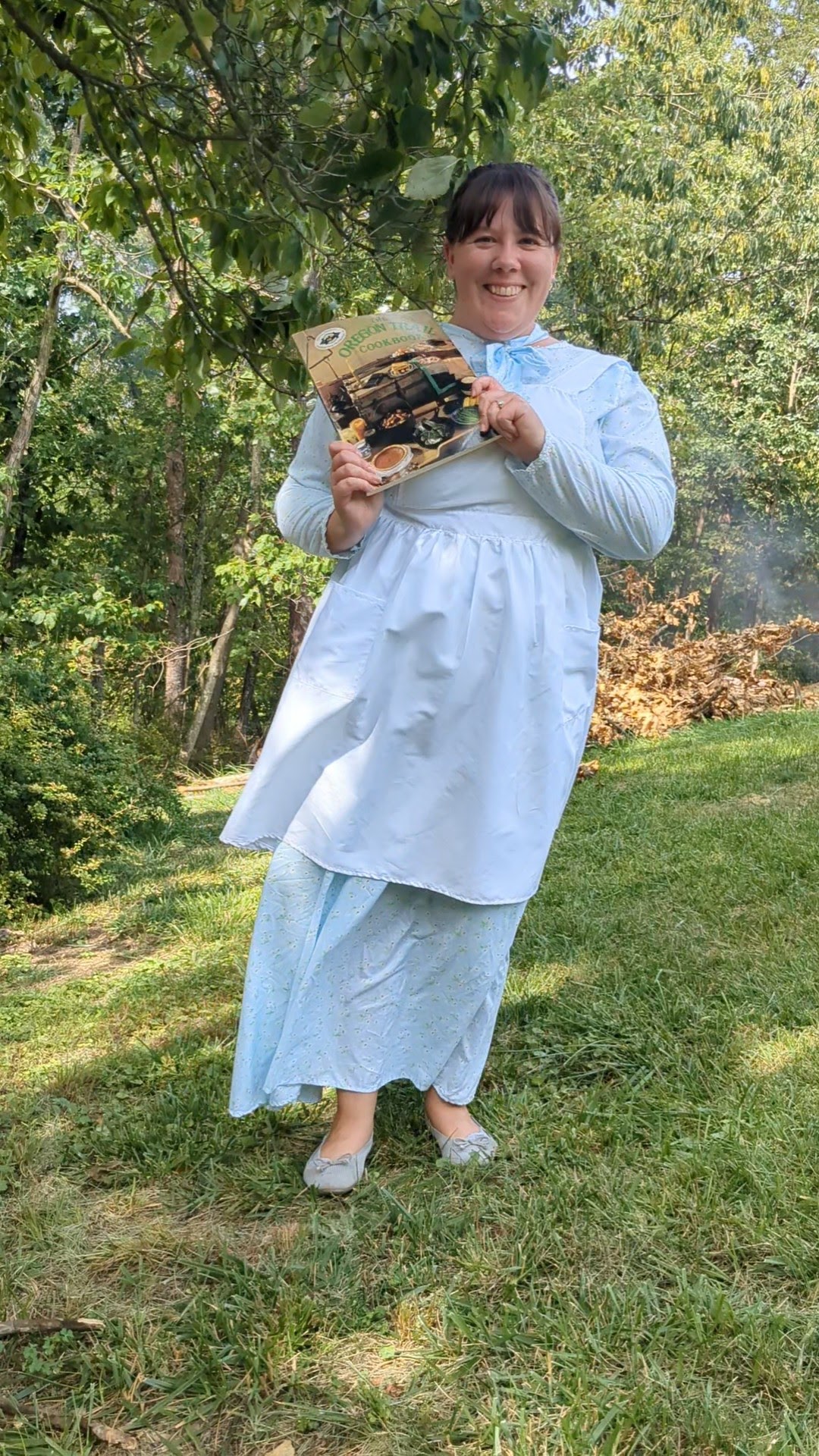 Setting up a spot on a couple of tree trunks and balancing my cookbook on a log, I got to experience the emigrants’ first difficulties. No wonder one of the diaries mentioned with delight a wagon with a shelf that could be let down for food preparation!