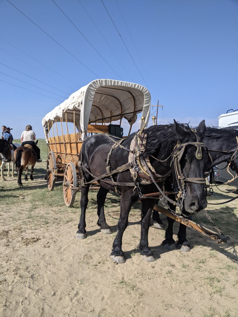 Some horses hooked up to an historically accurate schooner. But they were just going on a short trail ride, not across country.