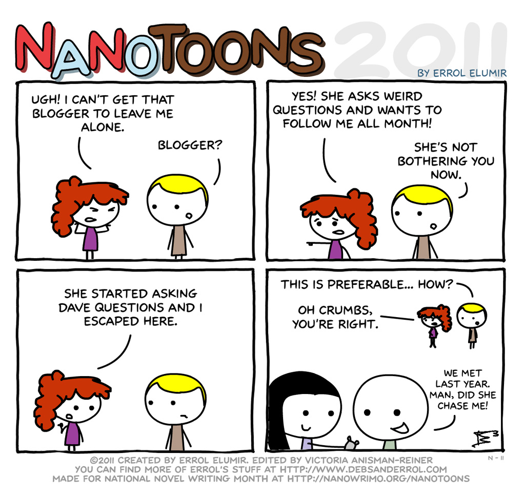 A few stayed around to visit afterward, which is always fun, but by the end of it, I was having trouble walking because my legs and hips hurt so much. Man, do I need to get into shape! So around 8:30, our last guests left and we curled up on the sofa with ibuprofen and tv…and I pulled out the laptop just long enough to write a couple sentences so I could update NaNo. But hey, 58 words is better than nothing. Every tiny step helps!