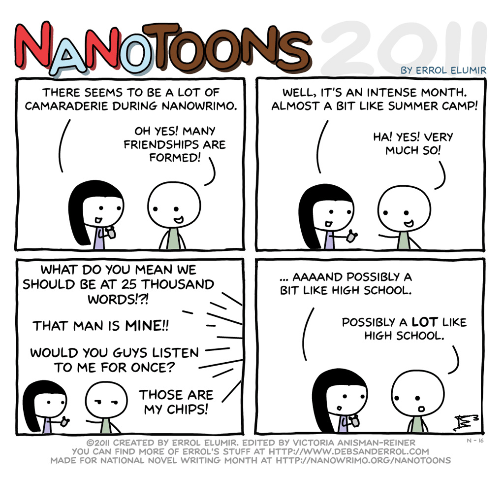 If you are seeing this, I either didn’t want to admit to my progress (or lack thereof), or simply didn’t have a chance to update and didn’t want you to miss out on the next brilliant NaNoToon!