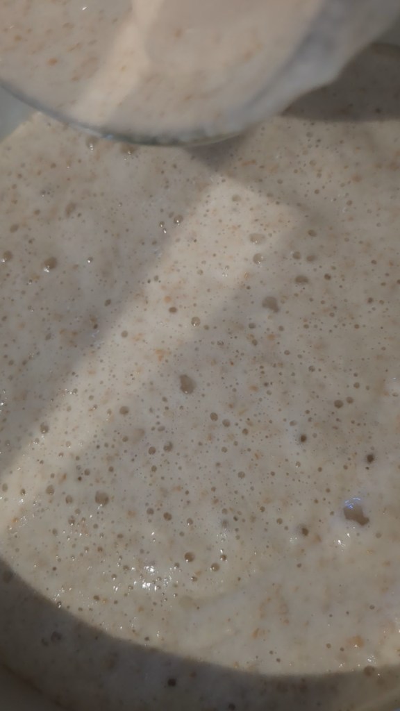 Okay, back to the sponge. Per the recipe, I let it rise until foamy and bubbly. I probably would have let it rise more, but apparently I put it in too small a container because it started foaming over the lip of the bowl. So it was time to move forward. From there, I added syrup, salt, fat, more graham flour, and some white flour to make one nice, thick dough. The recipe said bacon fat or other shortening, so we took the excuse to make two pounds of bacon with breakfast in the morning! But that apparently was only half the amount of fat I needed, so I supplemented it with lard. The dough looked so beautiful that I was definitely questioning the recipe now (Oregon trail, really?) if I’d been making excuses before…and then I tasted it.