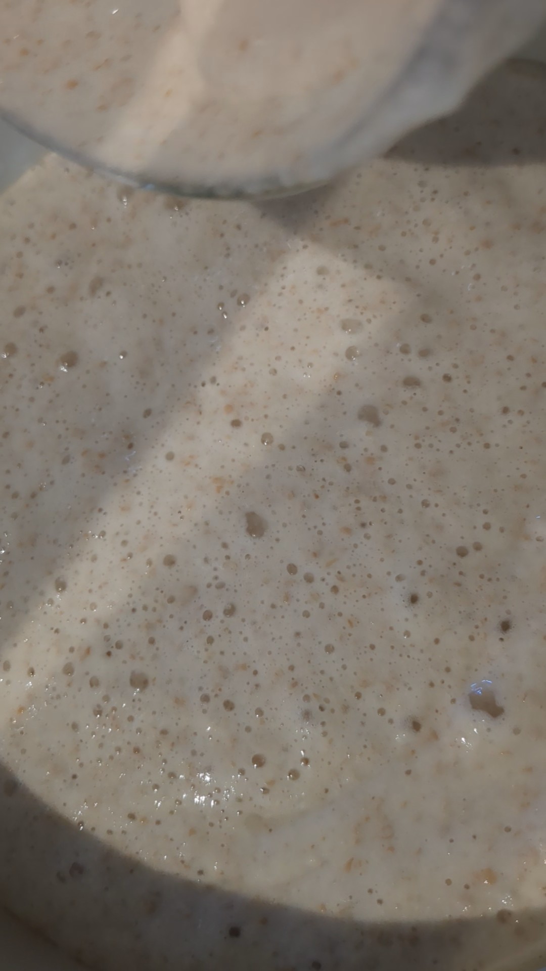 Okay, now, what is this graham flour I mentioned? Well, I wondered the same thing. I thought at first that it was just crushed graham crackers or something. But no. Apparently it is a special type of flour (one that is, in fact, used for graham crackers), and…relatively hard to get. It’s essentially a coarsely ground wheat flour invented by Sylvester Graham (I will say, there is at least one Oregon Trail letter touting the benefits of graham crackers, so whatever the recipe’s questionable ingredients, this isn’t necessarily one of them). The Spruce Eats describes it as “more coarsely ground than standard whole wheat flour, producing a rustic texture and nutty, lightly sweet flavor.” I could not figure out where to buy this flour. I found only one site that sold it and it would have been over $20 including shipping, which I was not willing to spend for a bit of flour. So, I did what everyone else online was doing. I made it myself. Or as close as I could come. I used a recipe from Food.com mixing together white flour, wheat bran, and wheat germ, all of which I could buy from a regular store!