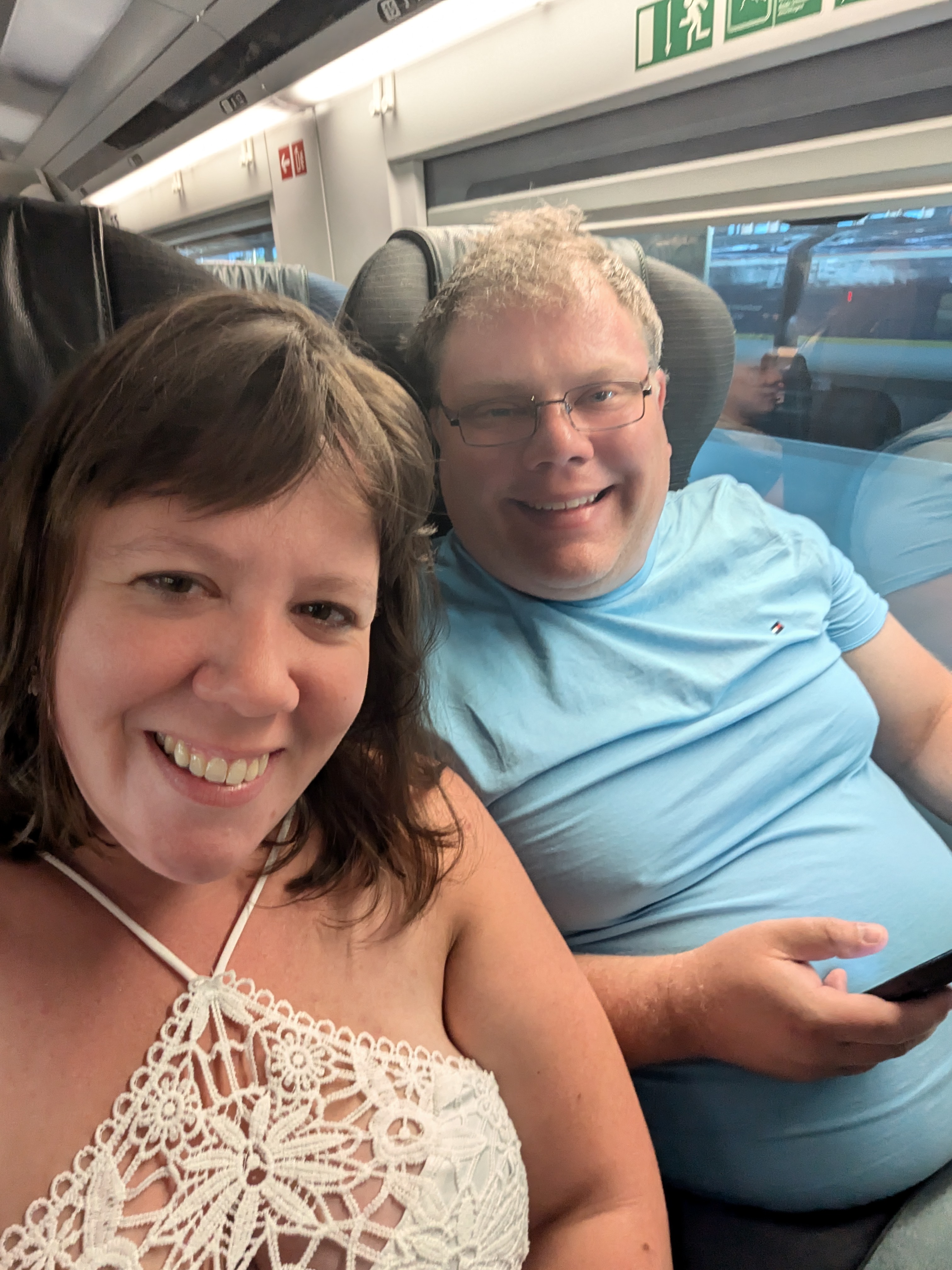 Anyway, we did make it to the station in time, got through security and passport checks, and the train lobby was SO FREAKING FULL that you couldn’t move without bumping into someone! We managed to procure two coffees and breakfast sandwiches – I forced mine down hoping it would help with my nausea (it didn’t) – and had barely finished that when it was time to board because the line for the sandwiches had taken so long.