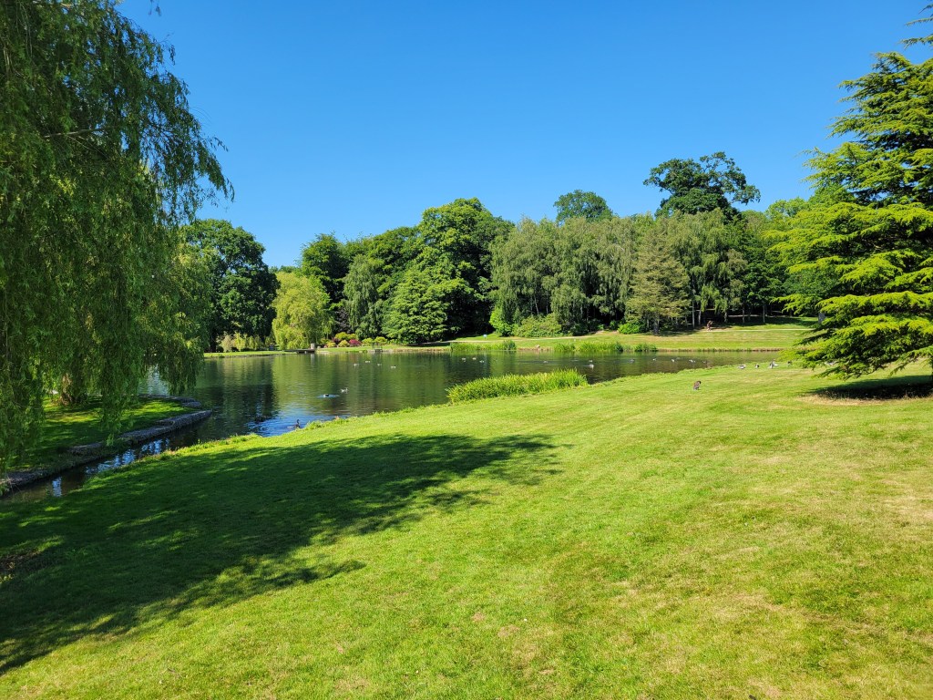 Have you ever heard of Leeds Castle? Neither had we, but oh. my. gosh. Those were some of the most gorgeous grounds I have ever seen! So the bus dropped us off at a visitor center/gift store and then you walk up to the castle itself – you can also take a shuttle bus, but we opted to walk so we could see the grounds and that was definitely the right decision. Lush green grass, trees, and flowers everywhere. Birds of all shapes and sizes – they are apparently known for their black swans – we only saw white swans, but I was still delighted. And then, as you get further along, you glimpse the castle up in the distance. And as we continued to walk toward it, we stumbled upon two swans with a bunch of baby swans (which are apparently called cygnets)!