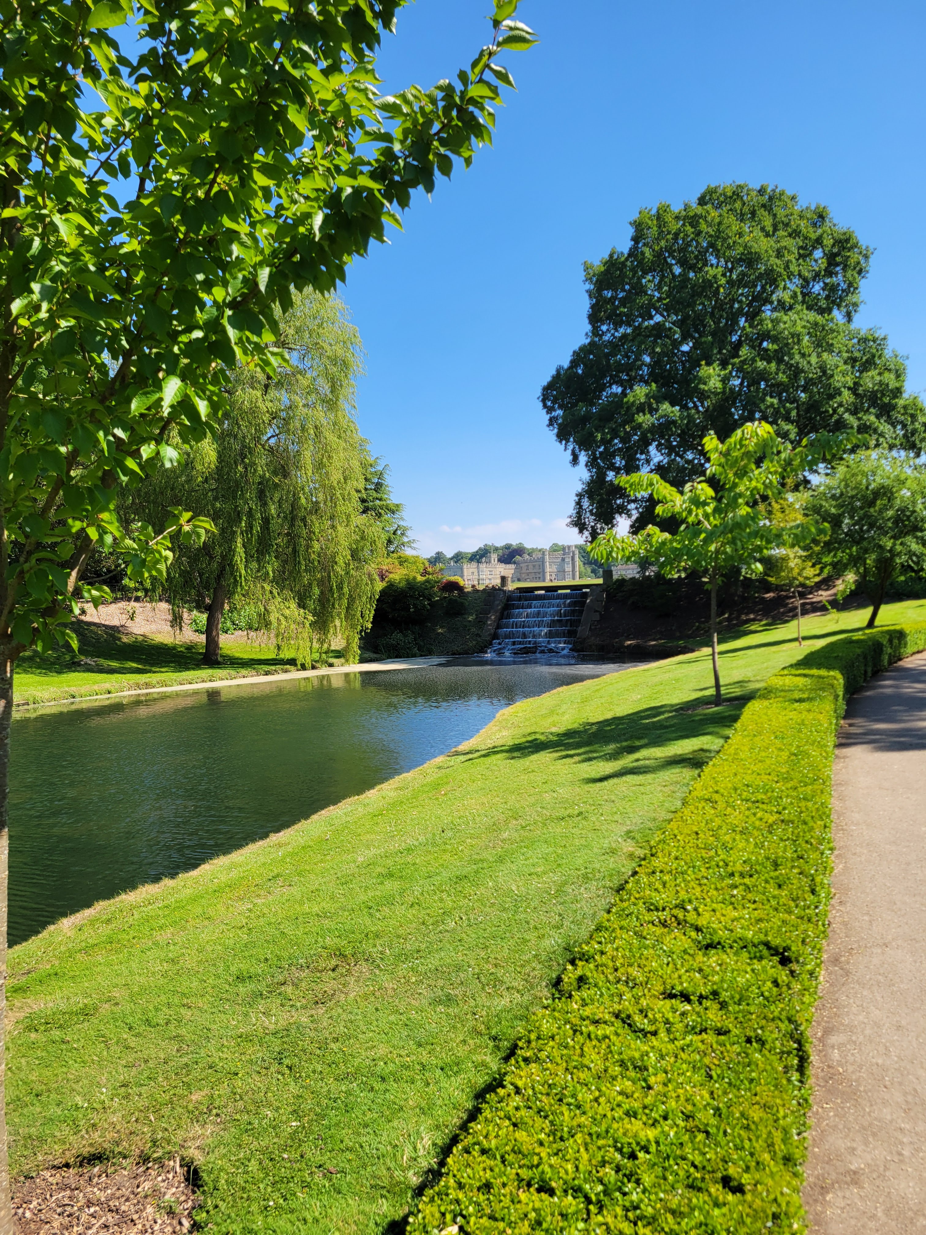 Have you ever heard of Leeds Castle? Neither had we, but oh. my. gosh. Those were some of the most gorgeous grounds I have ever seen! So the bus dropped us off at a visitor center/gift store and then you walk up to the castle itself – you can also take a shuttle bus, but we opted to walk so we could see the grounds and that was definitely the right decision. Lush green grass, trees, and flowers everywhere. Birds of all shapes and sizes – they are apparently known for their black swans – we only saw white swans, but I was still delighted. And then, as you get further along, you glimpse the castle up in the distance. And as we continued to walk toward it, we stumbled upon two swans with a bunch of baby swans (which are apparently called cygnets)!