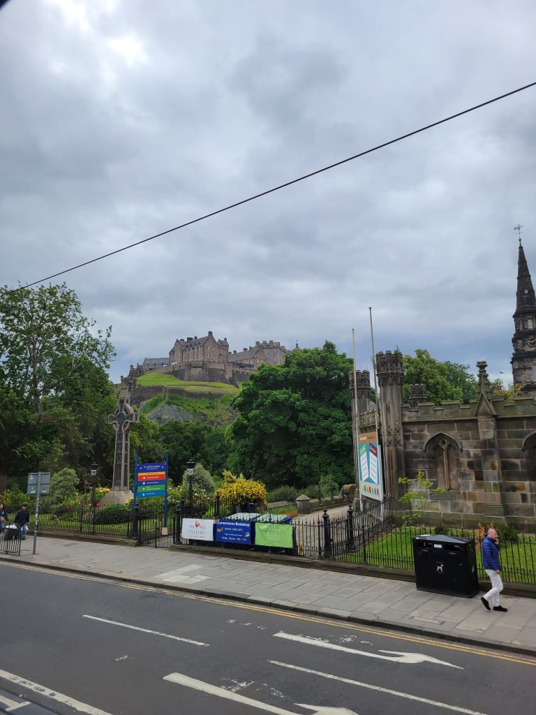 It was a nice bus ride with pretty scenery, but the city itself was amazing! It was cold, rainy, and windy, but so worth being cold on that tour. You could feel the age looking at the buildings, and yet they all still came across as sturdy and almost romantic. But the building that caught your eye and kept it was, of course, the Edinburgh Castle. Built on top of a former volcano, the origins of the fortress was built so long ago they can’t pinpoint an exact date, the castle is visible from everywhere, and is truly awe-inspiring. Our tour guide told us story after story of battles and kings and queens and pointed out the window to the room where Mary Queen of Scots gave birth to her son.
