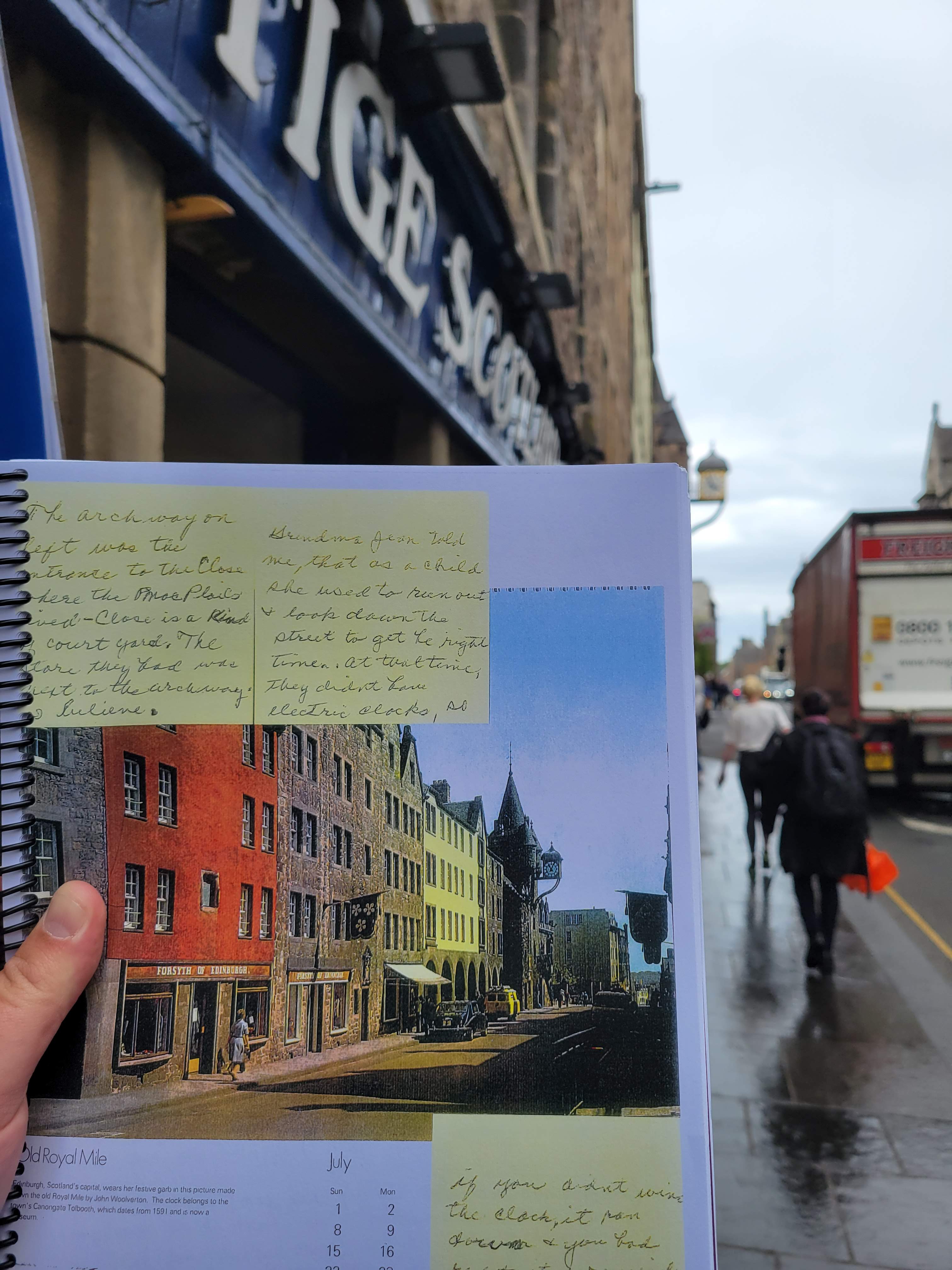 We traipsed all over the city, up and down hills, looking at buildings that were hundreds of years old, and learning about closes, which were basically narrow alleys to access homes and courtyards. More than once she pulled out her phone to show us pictures of how the place we were standing used to look so we could compare – there was often surprisingly little difference! In one case, she pointed to our feet and said that we were standing where someone’s house used to be. I was utterly delighted to see a WRITER’S MUSEUM – and equally sad that I couldn’t go in since, you know, we were in the middle of a tour. She also brought us to a parking lot that was BUILT OVER GRAVES! One of the parking spots was over the gravesite of John Knox.