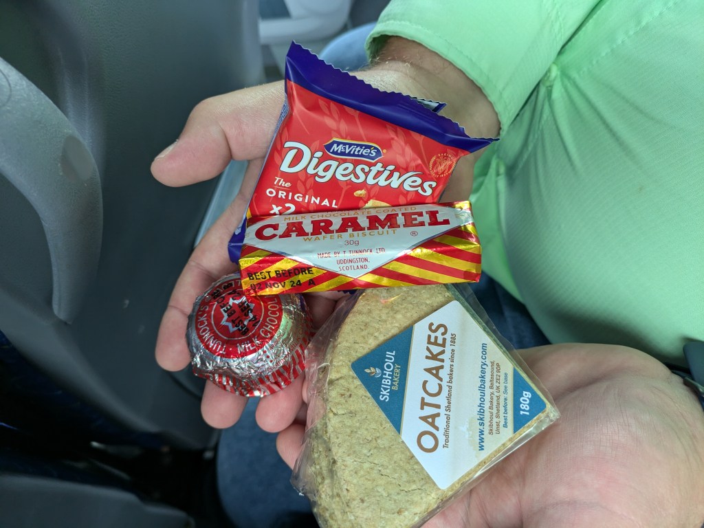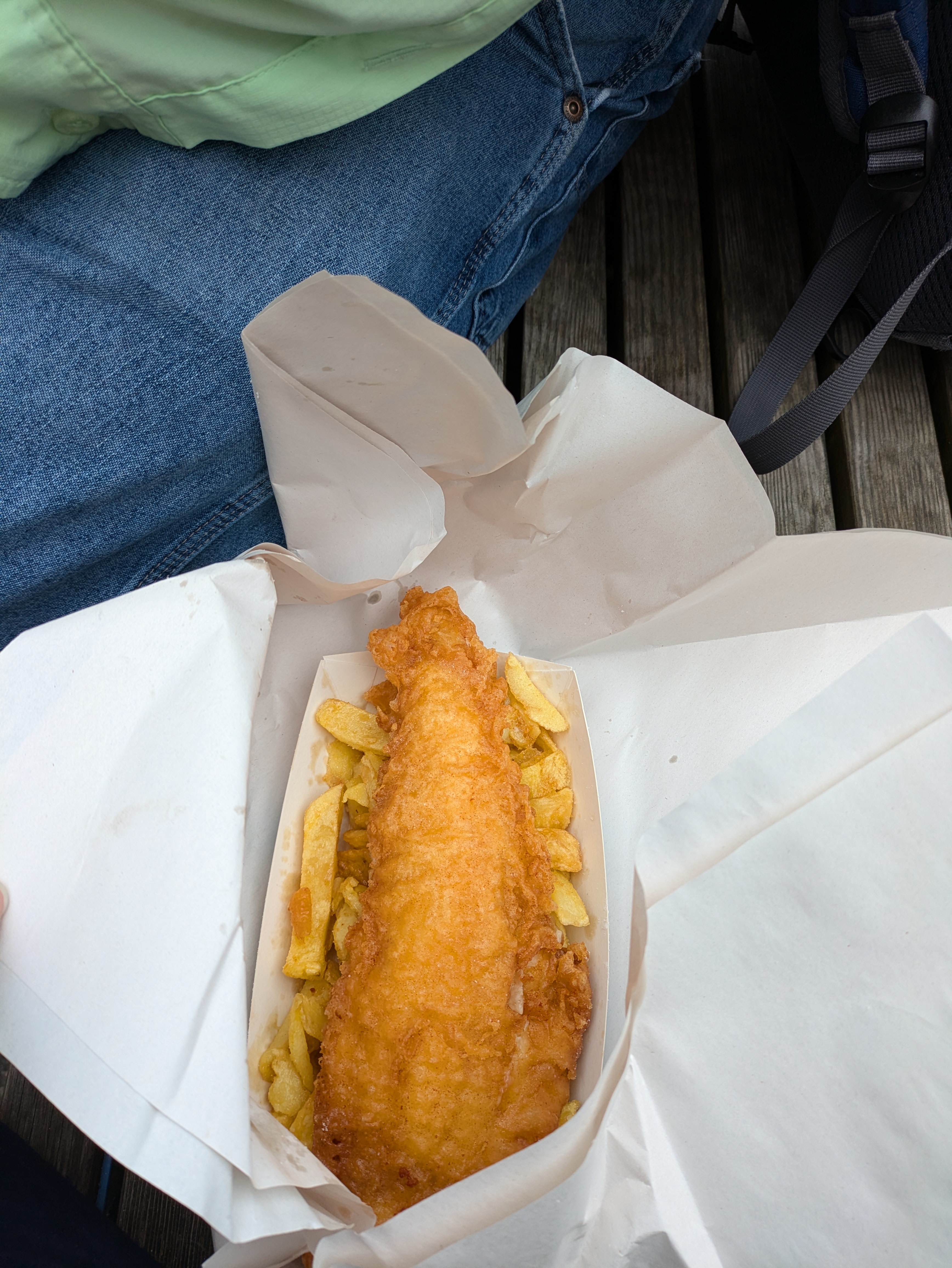 The ride back to town was mostly just more gorgeous countryside, and I was delighted to catch a glimpse of some heather beginning to bloom. The historical buildings in town were made of stone, same as in Edinburgh, and also lovely to see and we enjoyed going through a few shops to find souvenirs, including stumbling across a goat standing outside of a Goats Milk Store. We finished it off with some local fish and chips (actually wrapped in paper!!) and retreated to the ship, ready to be warm again.