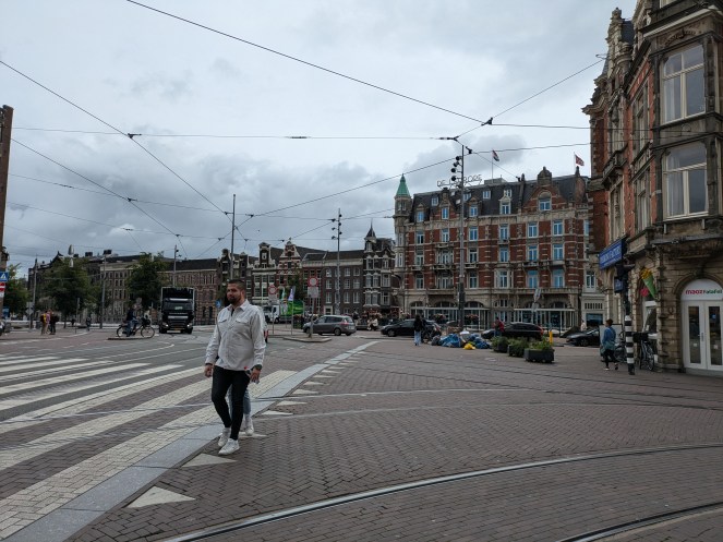 We ran across a bakery that also offered coffee, which we figured would be safer than a so-called coffee shop since we had no interest in trying Amsterdam’s well-known special coffee, and discovered our first issue. Everything was in Dutch. A lot of the words we could figure out, but some we had no idea what it meant. I figured out pretty quickly, though, that if I used Google lens, it would translate the menu for us, which was pretty cool. We got a couple sandwiches and espressos – and those sandwiches were to die for. My opinion of Amsterdam improved a little.