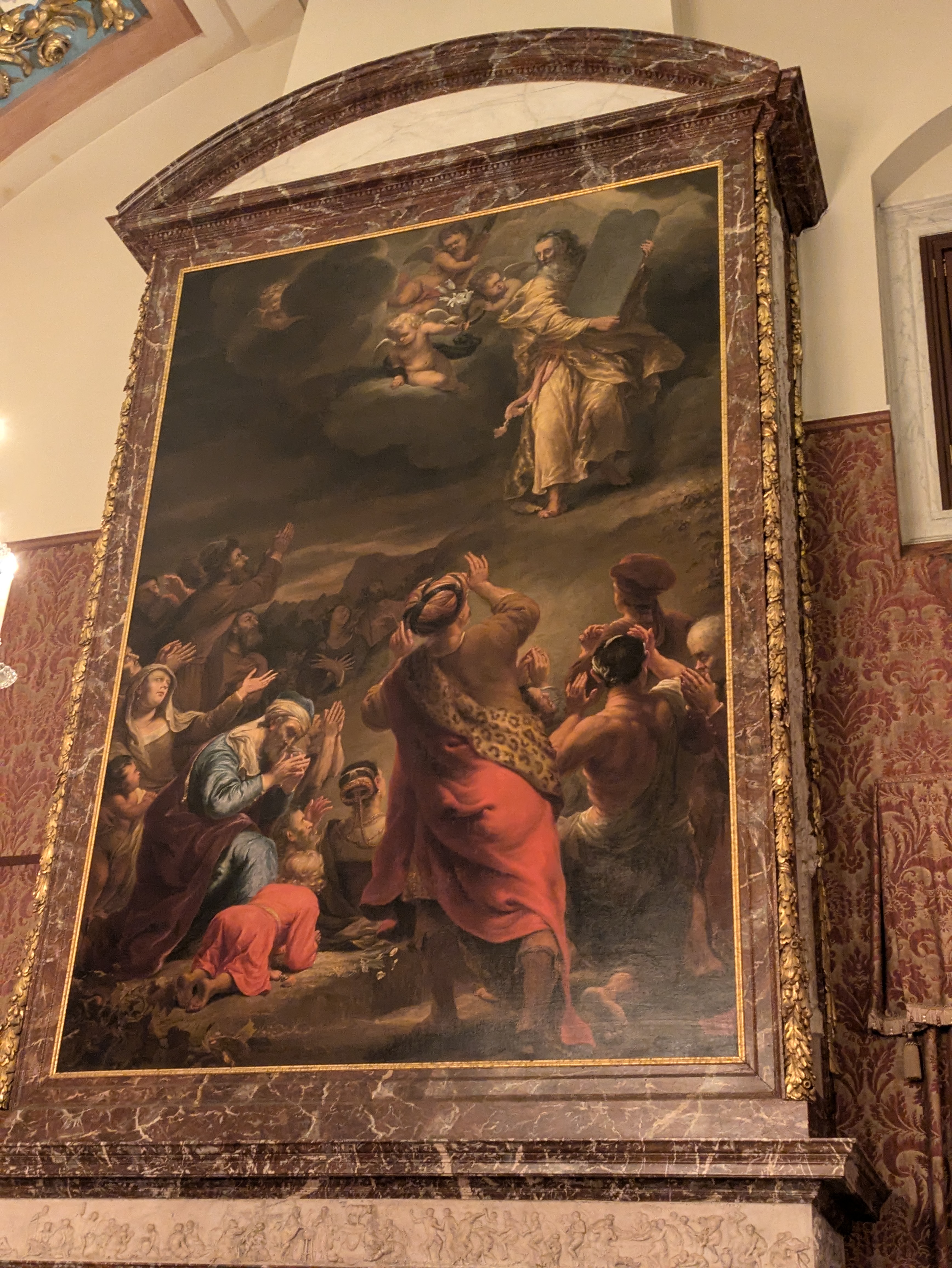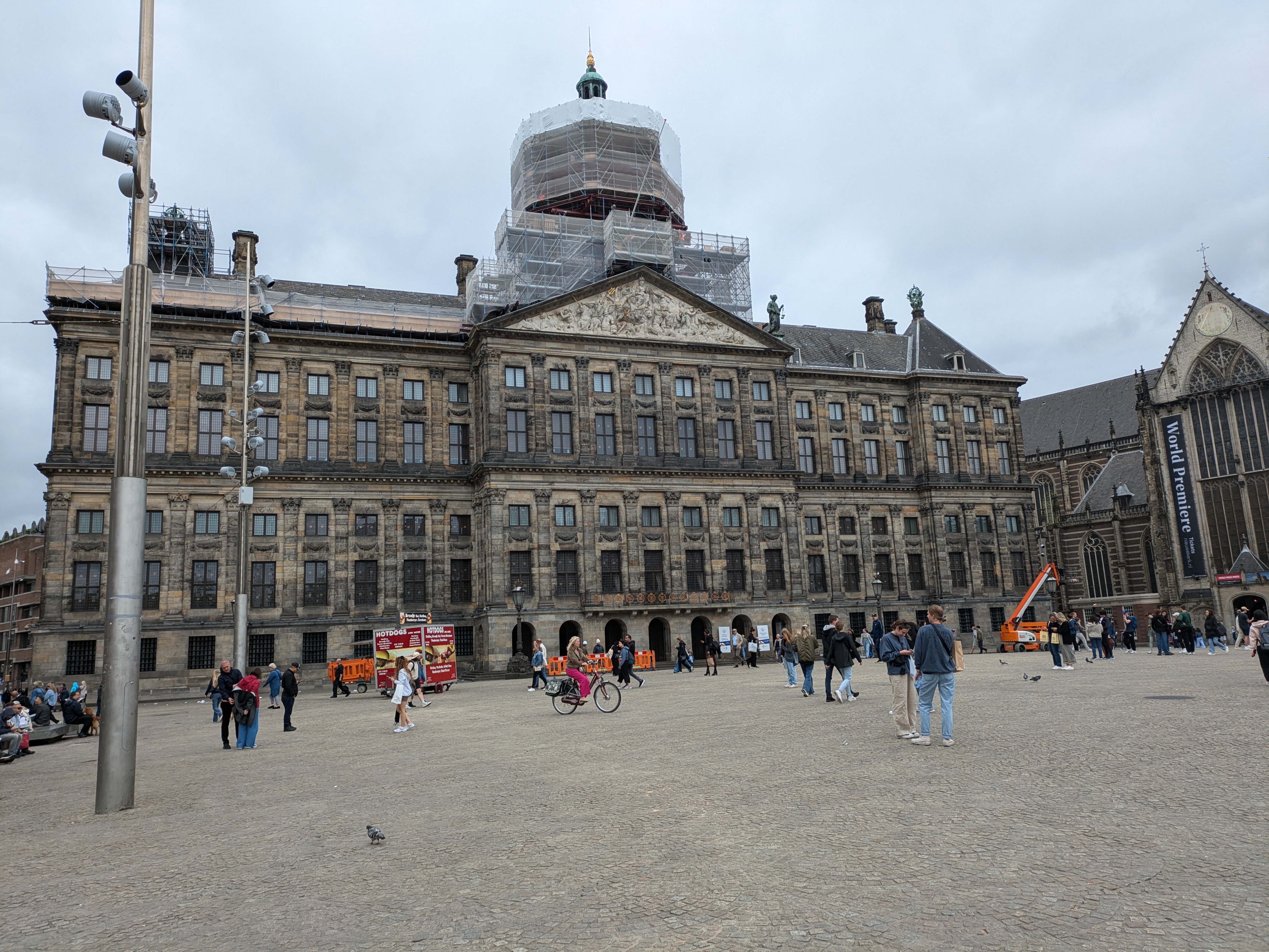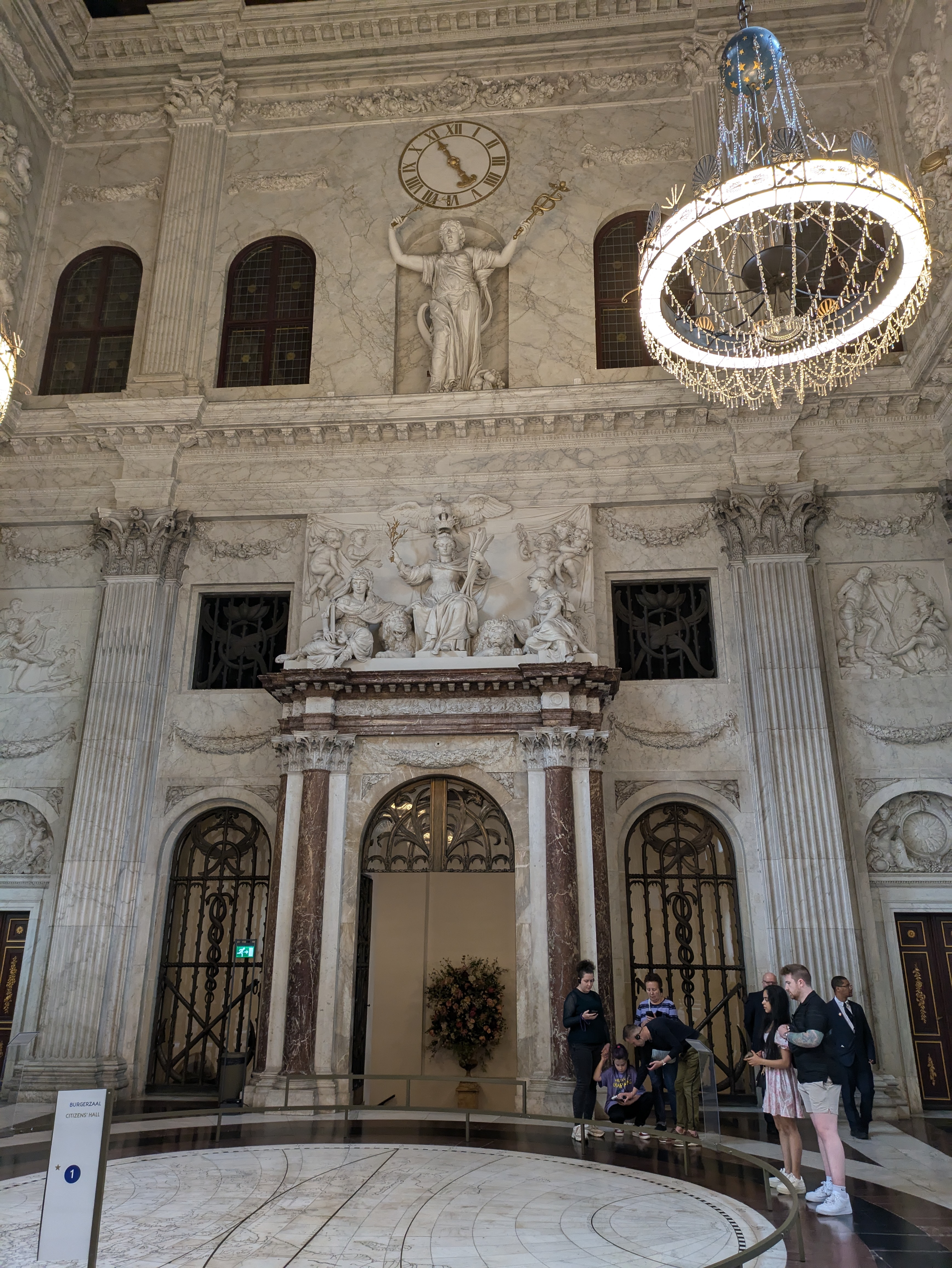 As we continued walking, we ran across a large square that seemed quite popular with a huge building. Daniel looked up what it was and discovered it was actually the Royal Palace of Amsterdam! We had no idea such a thing existed – it wasn’t on any of the recommended places to see in Amsterdam – and we got more excited when we walked up and realized we could actually tour it for only 12 euros a person. Which, of course, we did. And it was so worth it – the inside was absolutely exquisite. Audio tours came with it, which we also used since we had no clue what anything in the palace was, and the amount of history it relayed to us was amazing. Apparently, the palace was originally built as the town hall, and was used to conduct all business, which is displayed in all the engravings around the building depicting Biblical scenes or gods or goddesses with different meanings to indicate the different uses of the room, such as judgement or bankruptcy or things like that. The audio tour also said that Rembrandt was commissioned to do a painting for the town hall, which was subsequently rejected because they didn’t like it – something about it not displaying the king as powerful enough. Anyway, in the 1800s, Bonaparte made it into a palace after Napoleon made him King of Holland and even after he was defeated, it remained as the royal palace.