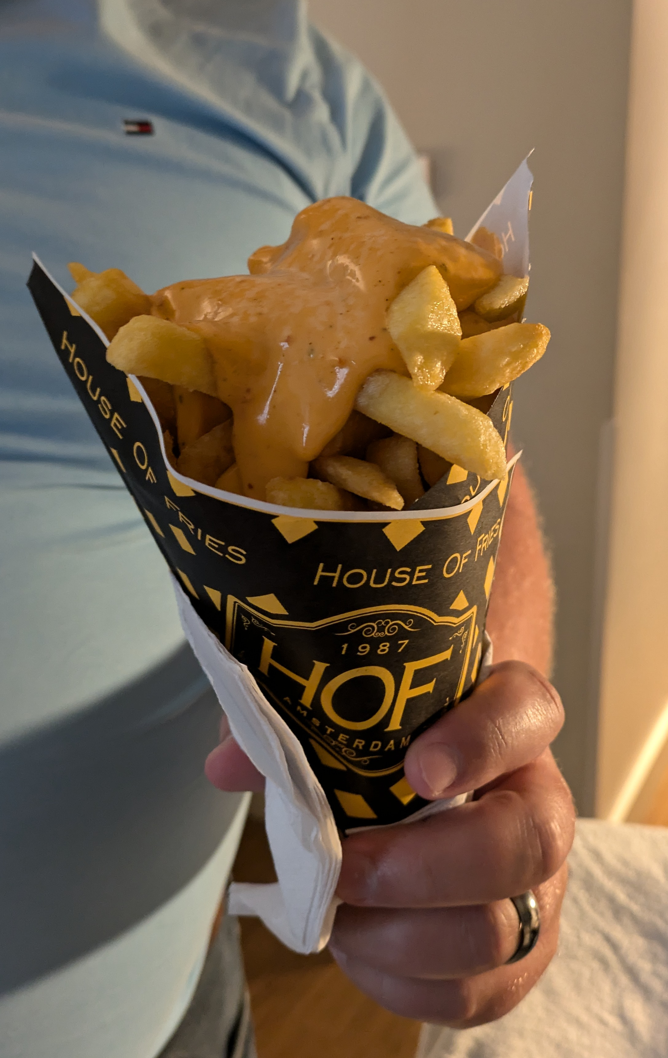 On our walk back to the hotel, we picked up some fries that came wrapped in paper with sauce on top – those were also amazing – and stopped by a cheese shop to taste test! Now that I think about it, maybe that was my favorite part. Interestingly, they actually served the cheese with mustard. And the weirdest part is that it was good! Good enough that Daniel and I picked up four rounds of cheese and a four-pack of mustard to go with them. The people there told us the cheese is good for about two weeks on our counter and then another few weeks in the fridge.