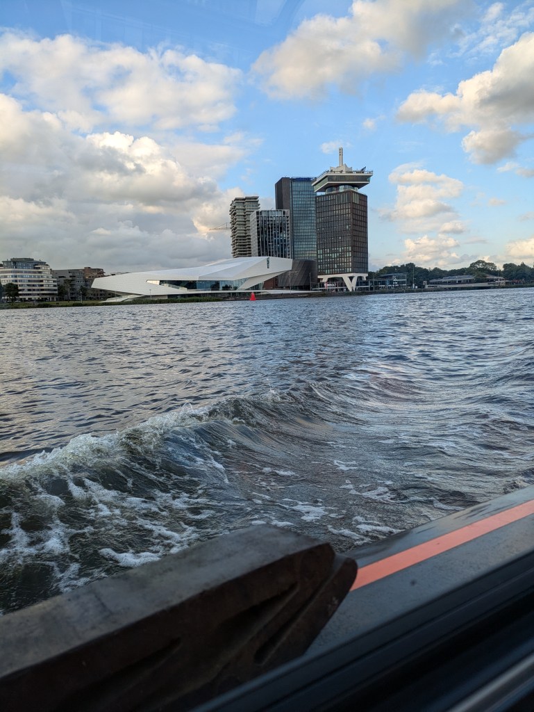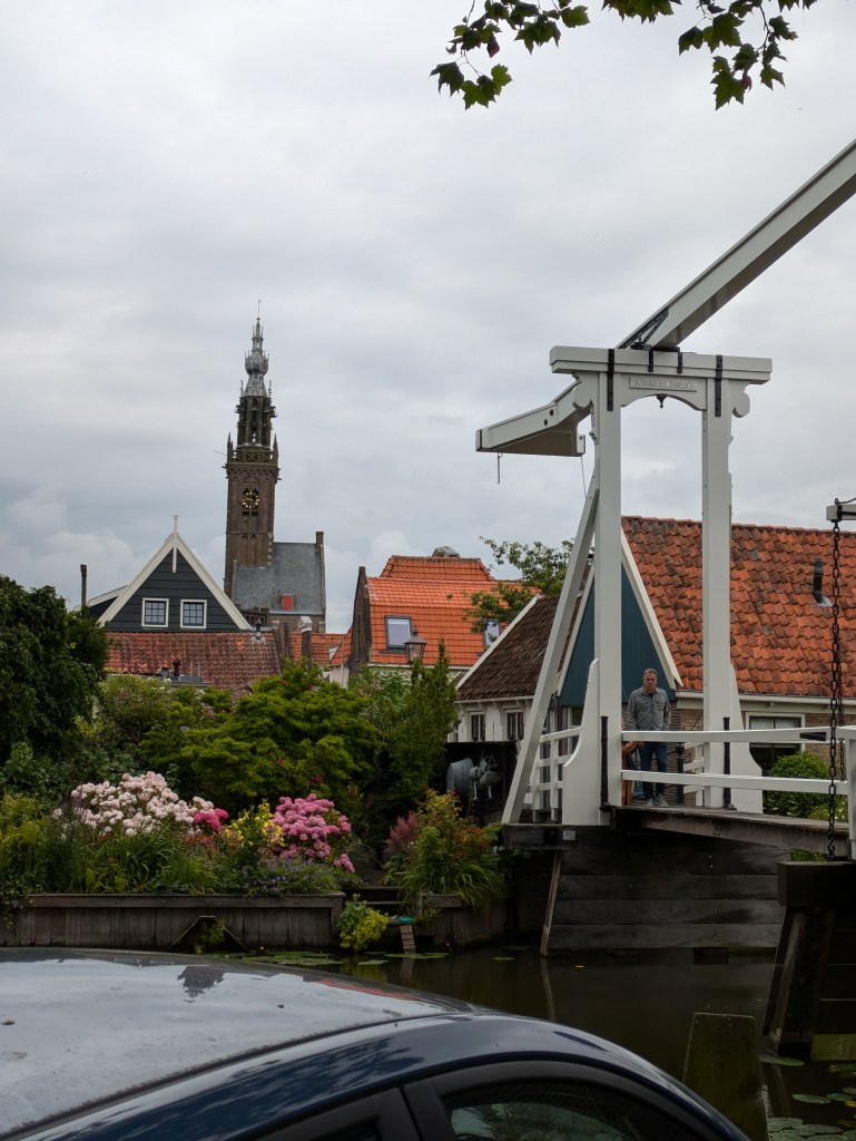 One last stop at another incredibly picturesque town where I was very glad I had shorts on under my dress based on the continued wind, we admired more cute houses and pretty canals, I got to see a plastic cow tipped over (and Daniel took a picture for me so we can prove cow tipping is real), and then we headed back to Amsterdam where we got to take a ferry across the river to head back towards our hotel.