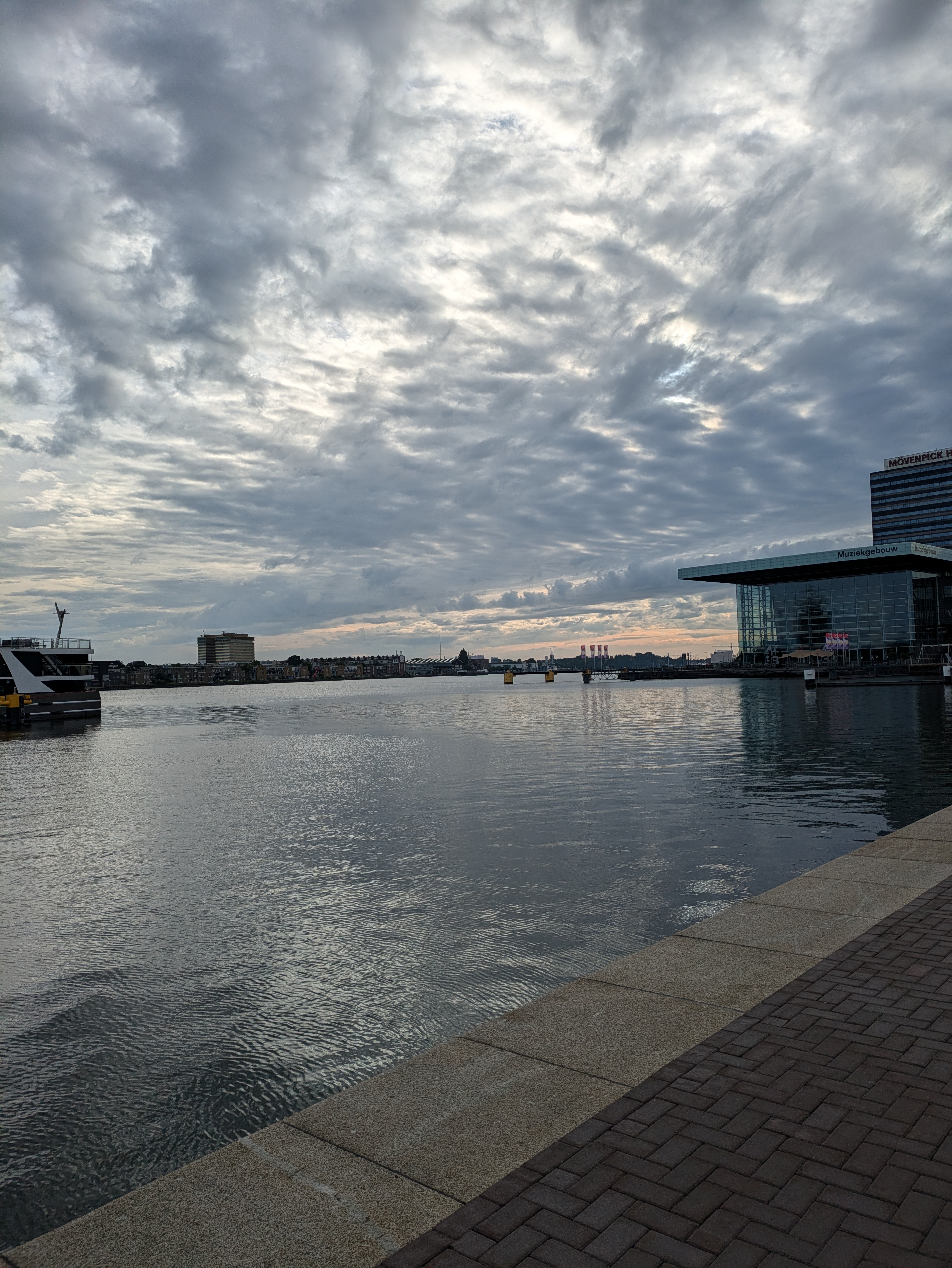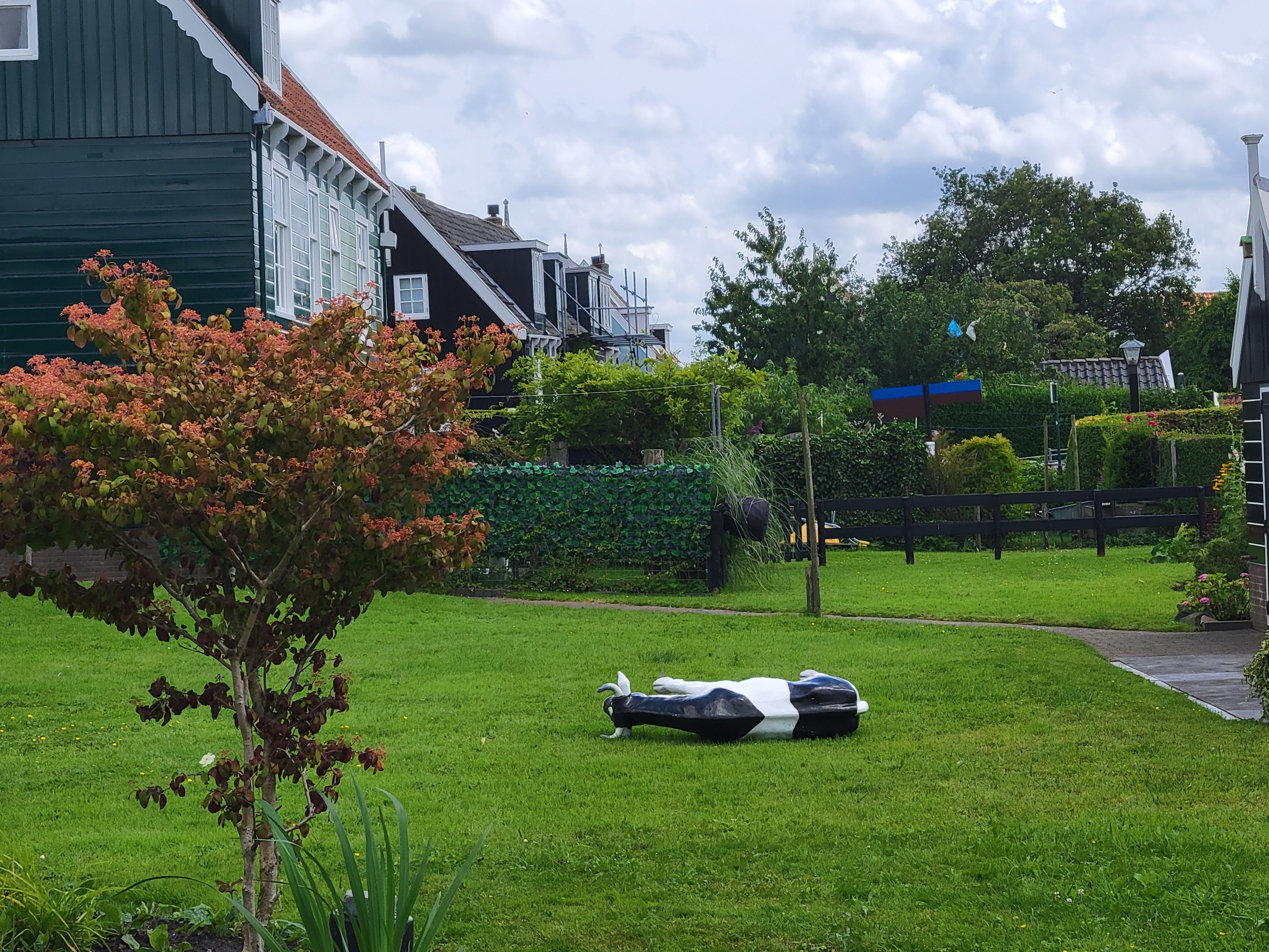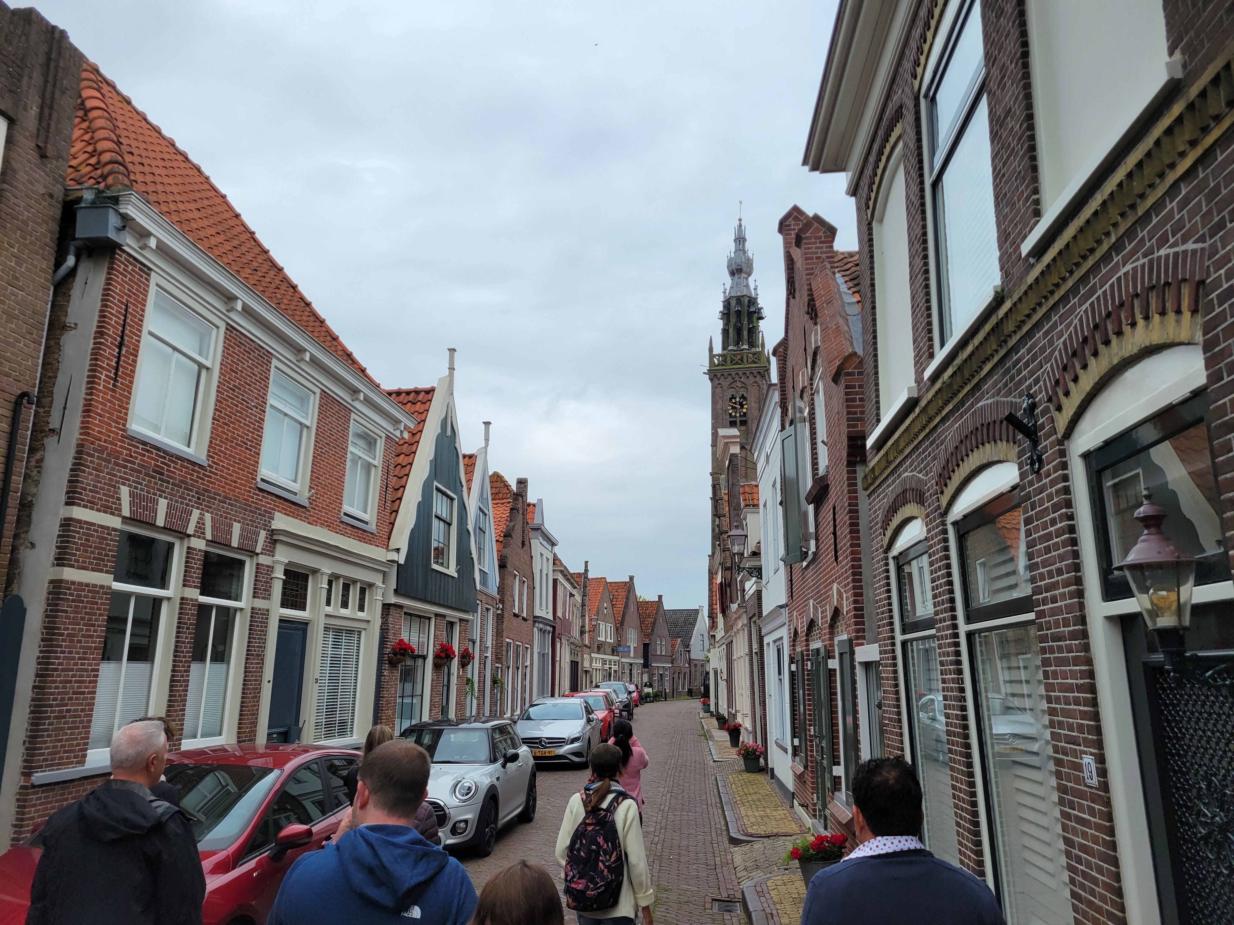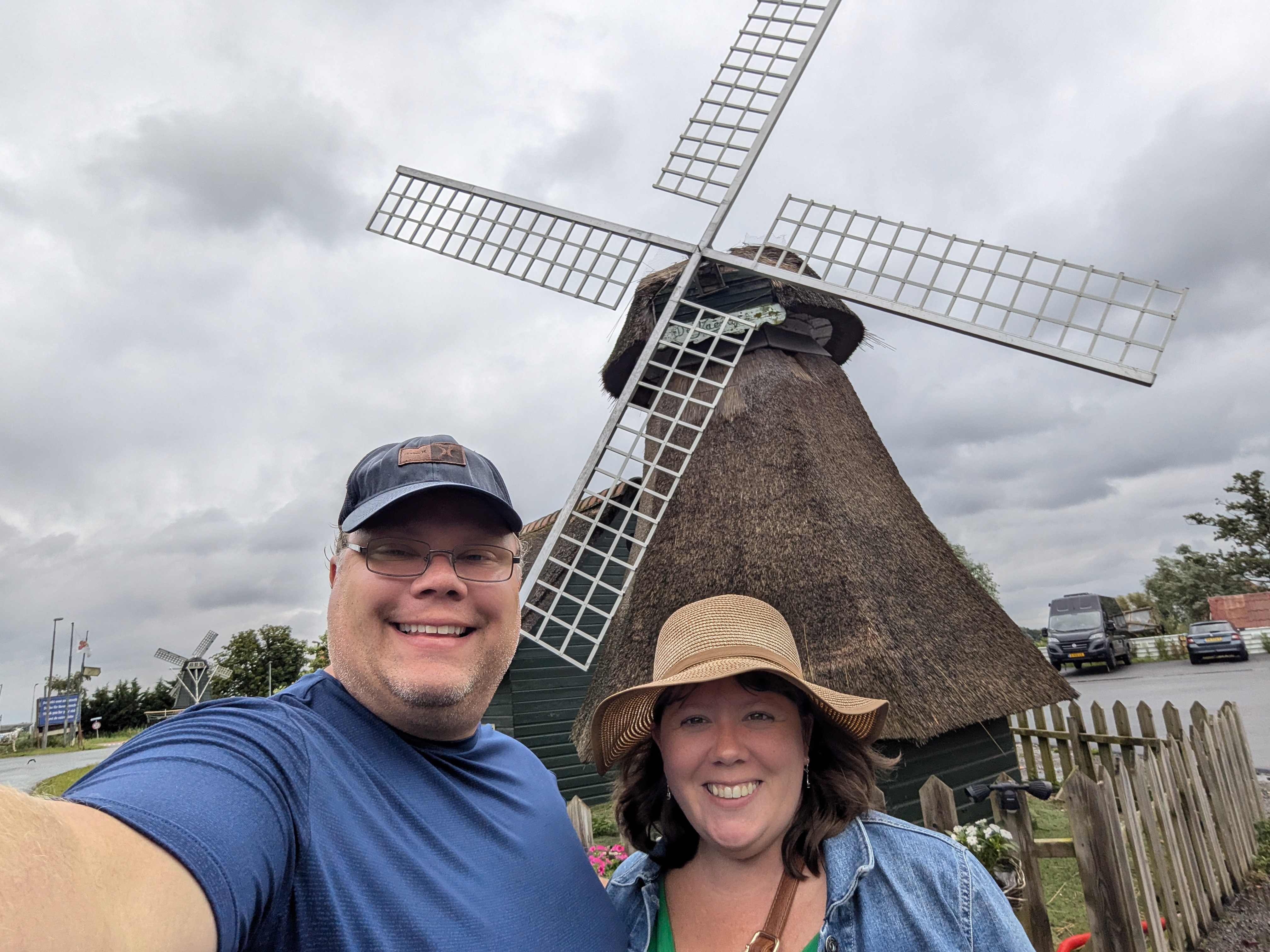 One last stop at another incredibly picturesque town where I was very glad I had shorts on under my dress based on the continued wind, we admired more cute houses and pretty canals, I got to see a plastic cow tipped over (and Daniel took a picture for me so we can prove cow tipping is real), and then we headed back to Amsterdam where we got to take a ferry across the river to head back towards our hotel.