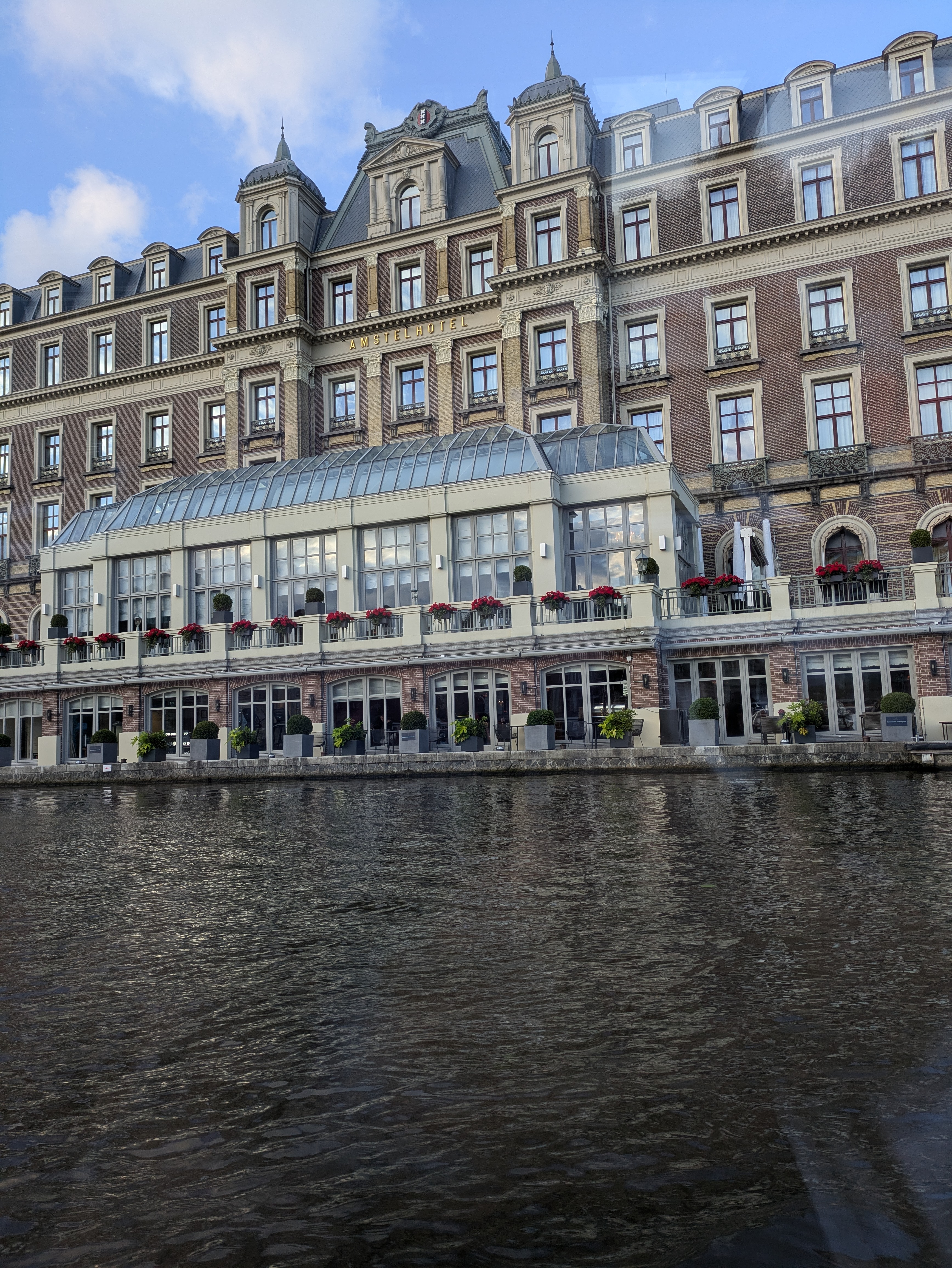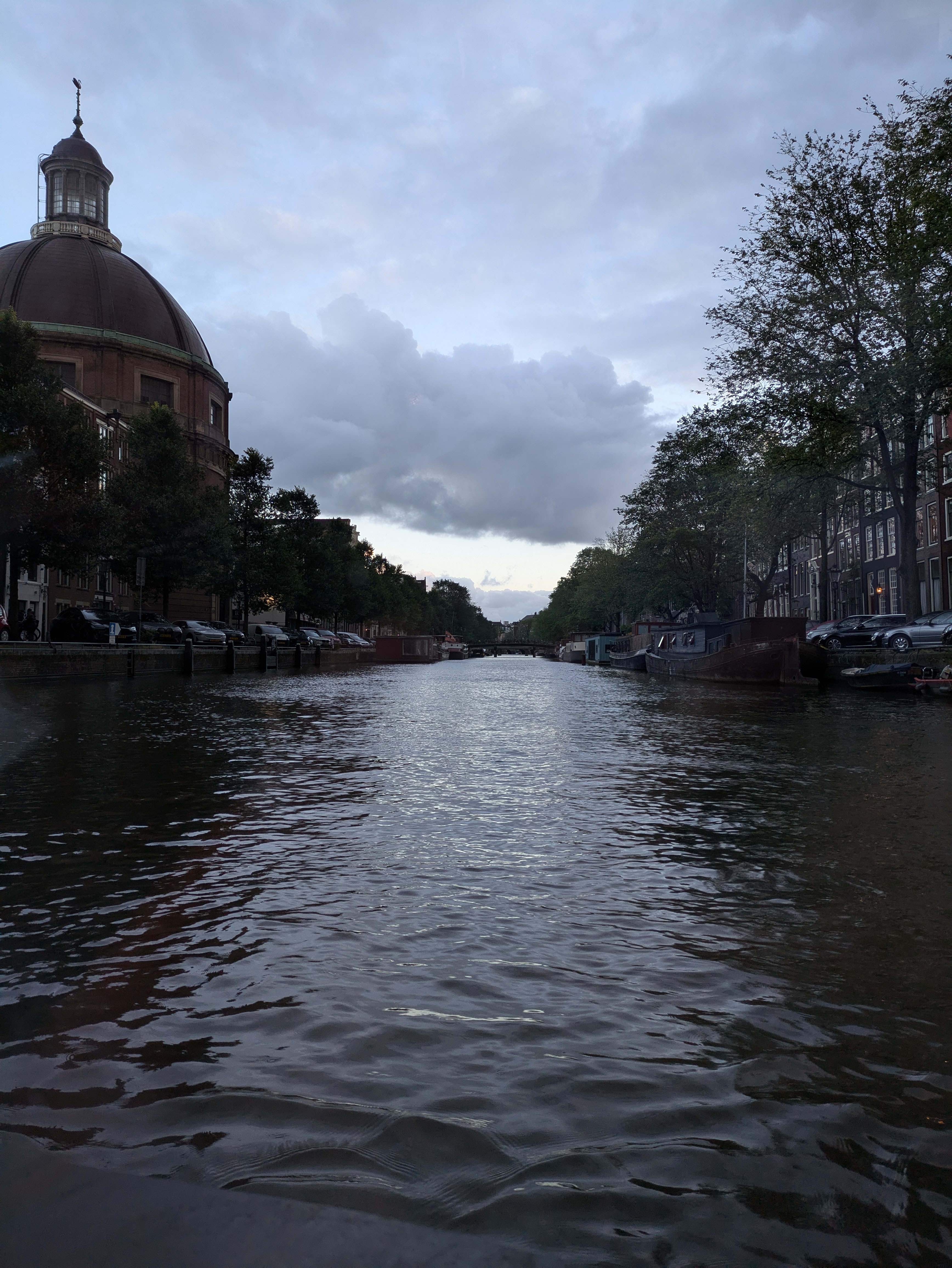 We stopped by a pharmacy to try and find more meds for our flight the next day and succeeded only in locating some Ricola cough drops, passed a supposedly Italian bakery boasting of delicious-smelling pizza and delicious-looking cheesy pretzels and couldn’t resist stopping. We won’t make that mistake again. I don’t know how pizza can smell that good and be THAT dry and bland. Same with the pretzel. I mean, we did finish them – but mostly because we were hungry. Back in the hotel, we rested awhile, packed for tomorrow, and then changed and headed back out for our wine and cheese cruise! Now that I would go back to Amsterdam for. They had such a nice little set-up, with a platter of different types of cheese, dipping sauces, peanuts, and bread, and then we could choose between red, white, and rose wine. It was so fun being so close to the water and Amsterdam from the canal itself was so much prettier. We chatted with the couple who sat next to us, who were quite nice and had just started a month-long vacation, and I still pray we didn’t get them sick!