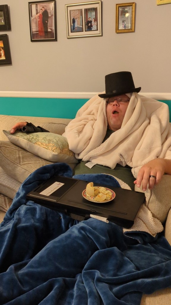 With no indication whatsoever of how hot the oven should be, I left it at 350, which must not have been hot enough because it was definitely not done at 30 minutes. Of course, there’s also no indication of how to tell when it was done, so I decided to go by the custard setting…which took closer to an hour. I took it out, dished it up, and served it to my husband. Or at least tried to. The apples were still a little crunchy and since his right hand is still basically unusable thanks to his thumb tendon surgery, I ended up cutting it up and serving it to him. Which means I was so concentrated on feeding it to him, I forgot it came straight out of the oven. It may not have been my most sympathetic move, but I admit I about died laughing when all he could do was yell “Hot! Hot!”