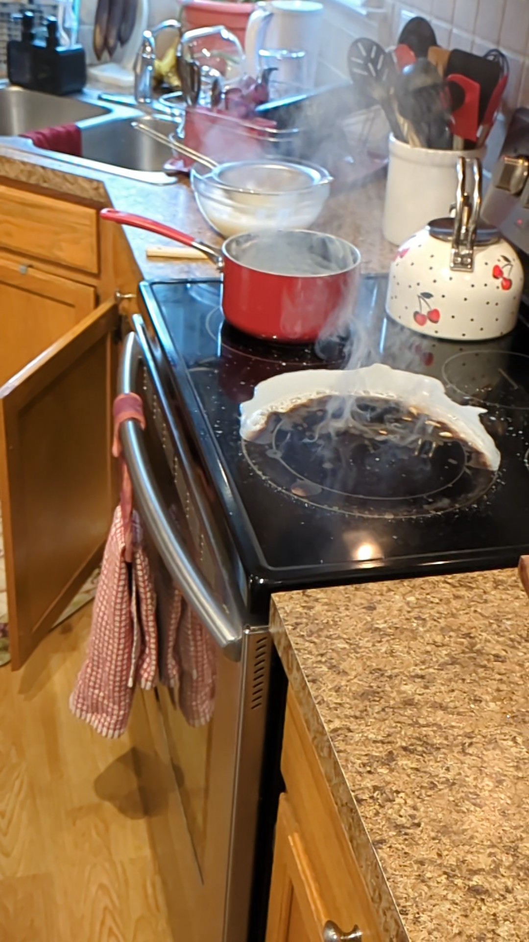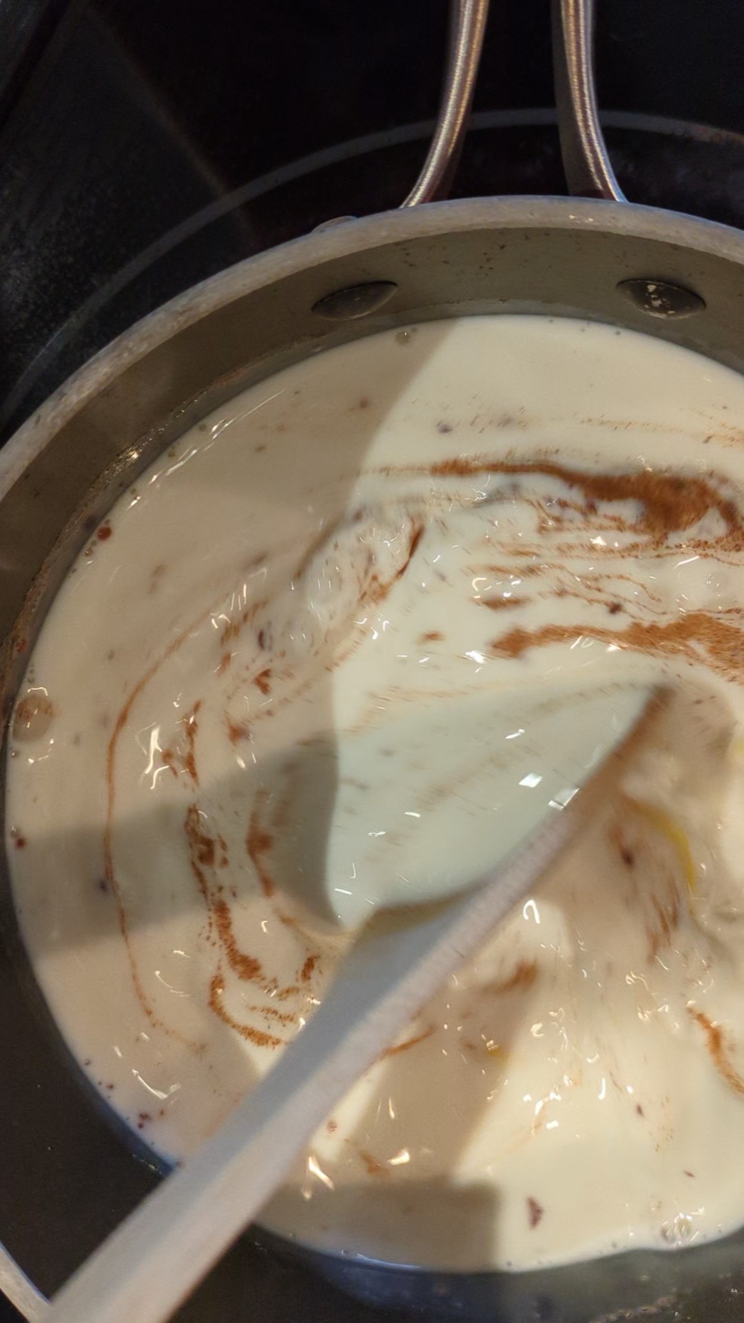 The very first thing I was instructed to do was prepare a custard. Thankfully, there was a custard recipe on the page before, so I started with that. First, I boiled milk with some cinnamon or lemon peel…while it boiled I made the mistake of working on another part of the recipe, so there may have been difficulties involving smoke alarms….but eventually I got it straightened out, strained any burned bits, and it was (almost) as good as new! Ahem. But back to business.