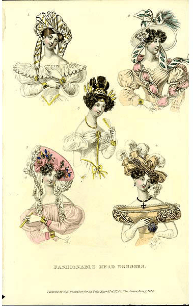 - “Hats and Hair Fashions, 1828,” n.d. https://digitalcollections.lib.washington.edu/digital/collection/costumehist/id/416/rec/20.