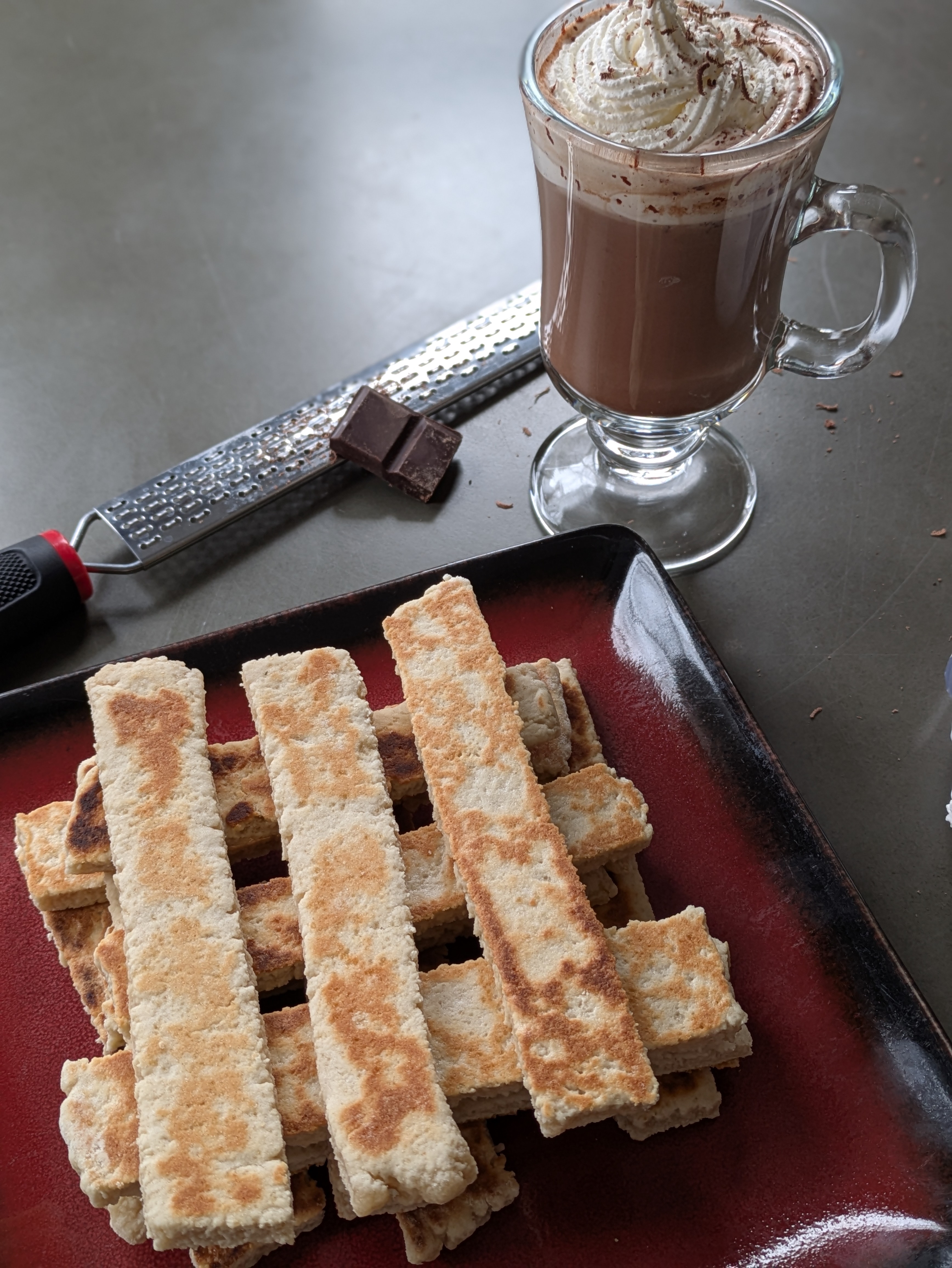 Step Six: And finally, I was instructed to put the cakes in rows like a checker pattern and serve them to eat with chocolate. With chocolate? At first I thought perhaps this meant actual pieces of chocolate. Then I thought maybe I was supposed to make a chocolate sauce to drizzle over the top. But finally, I settled on hot chocolate. Because it specifically said to “serve them to eat with chocolate”. And, thinking back to 19th century references to drinking chocolate, I remembered most of the time, they simply refer to it as chocolate. So it seemed the most likely interpretation, though I’d be interested in knowing if any of you think otherwise!.