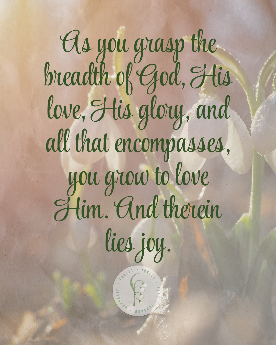 And, when it comes down to it, this is what the chapter in the book is about. Grasping who God is, loving who He is, and therein finding your joy.