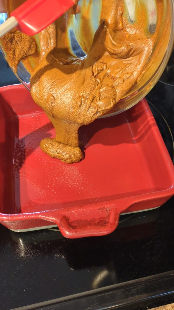 Step Five: Previous to this step, we got actual measurements. But the final step in this recipe? Bake Quick. That was it. So I went ahead and put the oven at 400, poured the batter into a square pan, and set the timer for ten minutes.