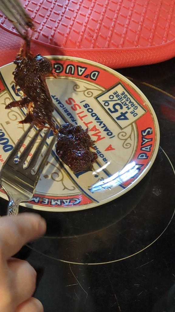 Okay, so, all in all, the verdict was: No. Just no. First of all, it was nothing like gingerbread. Second of all, it was definitely burned. Third of all…again, just no. Though, I am curious to know what would have happened if I had taken it out earlier. Would it have been more of a soft caramel texture? I even thought maybe the book misprinted it and forgot the flour – because the way the recipe went made no sense to me, so I tracked down the original source (thank you, Google books!), and, nope – that’s precisely how the recipe went.