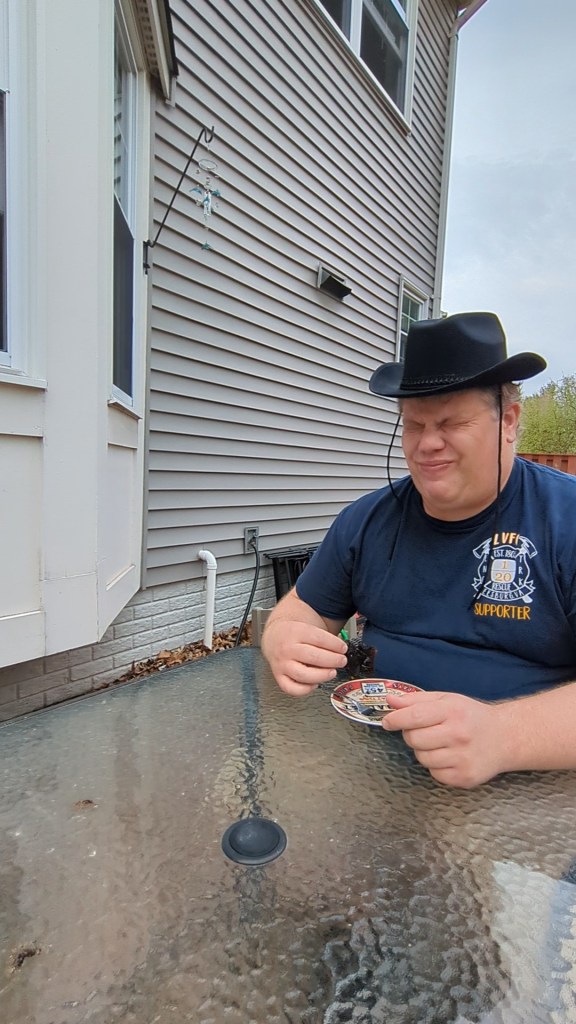 Step Seven: Again, technically not in the recipe. I made an executive decision to wait until the “gingerbread” cooled to try and cut it…you know…since it was liquid. And once it cooled it was more like a really sticky candy. So I guess at least the molasses part was right? I could barely get pieces out of the pan, and once I did and it started cooling, I realized there was a good chance it was going to harden like overdone taffy, so I told Daniel we had to test it while he could still chew it.