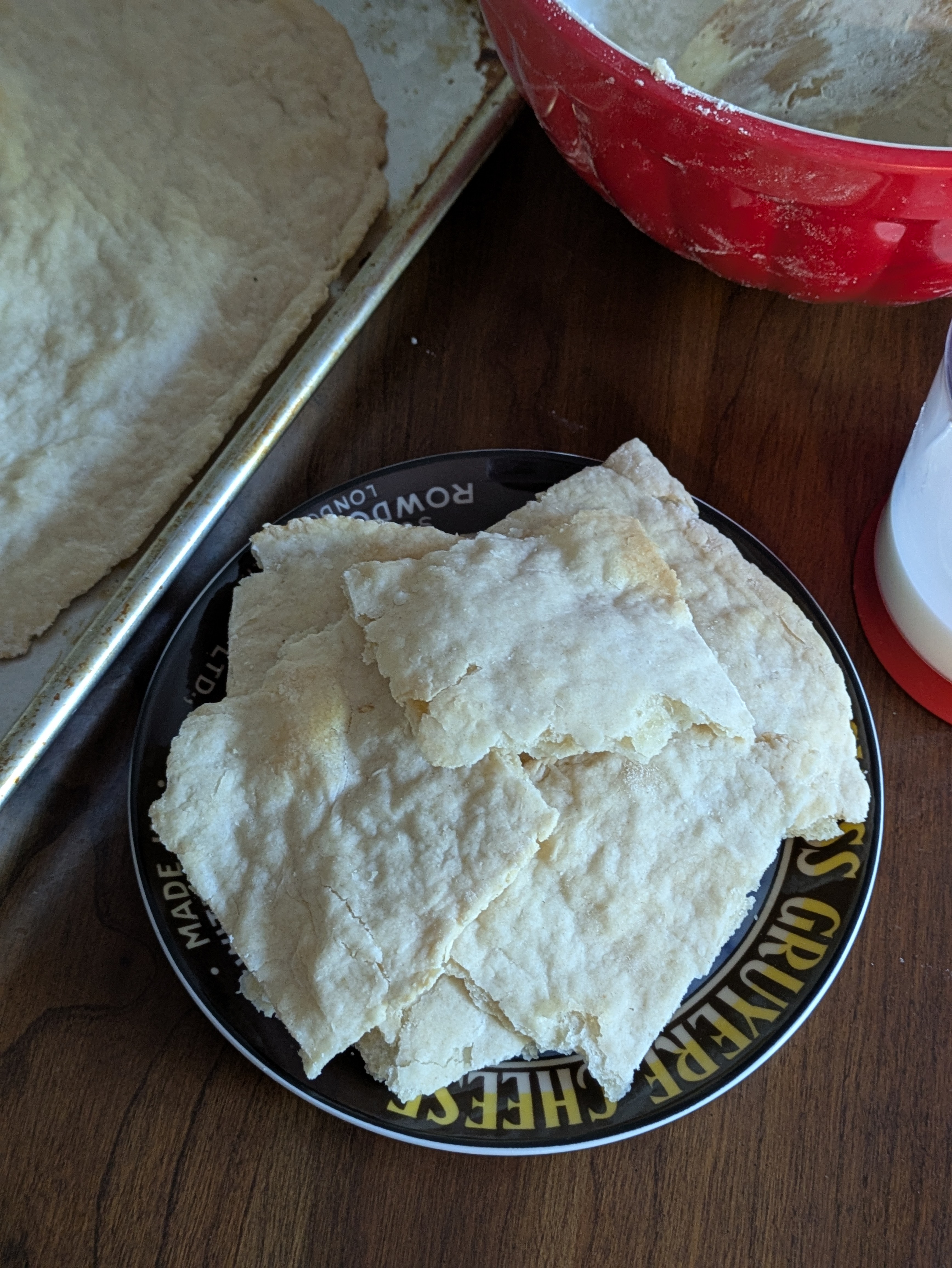 Step Four: Bake it to look white. And this is where I got lost. Um. Okay. What temperature? How long? Should I cut it into biscuits or leave it as a sheet of paper-like dough? To look white??? What does that even mean??