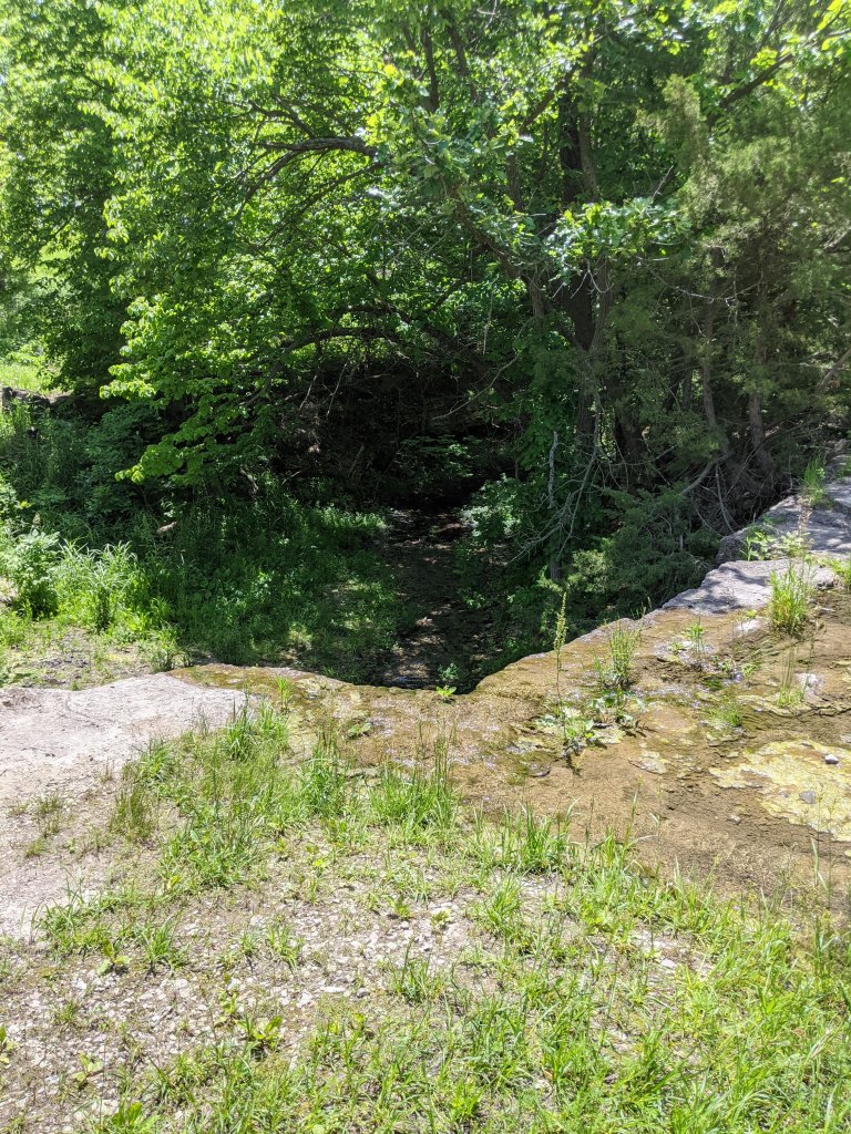 Edwin Bryant, 1846 – “About three-fourths of a mile from our camp we found a large spring of water, as cold and pure as if it had just been melted from ice. It gushed from a ledge rock, which composes the bank of the stream, and falling some ten feet, its waters are received into a basin fifteen feet in length, ten feet in breadth, and three or four feet in depth. A shelving rock projects over this basin, from which falls a beautiful cascade of water, some ten or twelve feet. The whole is buried in a variety of shrubbery of the richest verdure, and surrounded by small mound-shaped inequalities of the prairie. Altogether, it is one of the most romantic spots I’ve ever seen. So charmed were we with its beauties, that several hours unconsciously glided away in the enjoyment of its refreshing waters and seductive attractions. We named this the “Alcove Spring”, and future travelers will find the name graven on the rocks, and on the trunks of the trees surrounding it.”