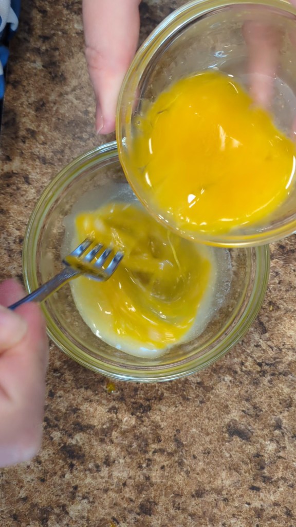 Step Two: Lightly beat an egg and an egg yolk. Easy enough.