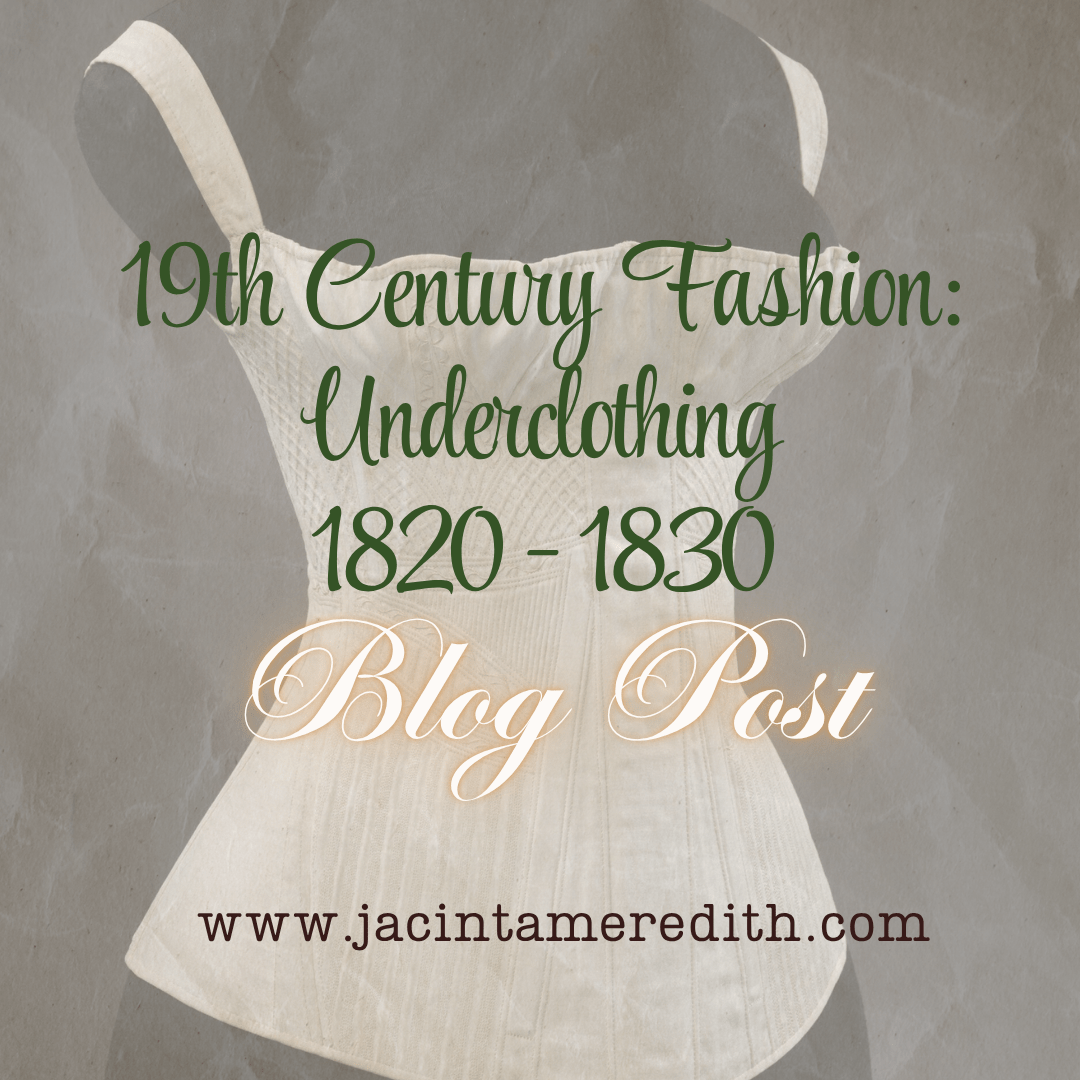 Technically, we are now out of the Regency era and not quite to the Victorian era. . . so I guess we just use the overarching Georgian era terminology? While the type of underclothing was essentially the same, the style did start evolving between 1820 and 1840 as skirts widened, the waist shifted, and weContinueContinue reading “19th Century Underclothing: 1820 – 1830”
